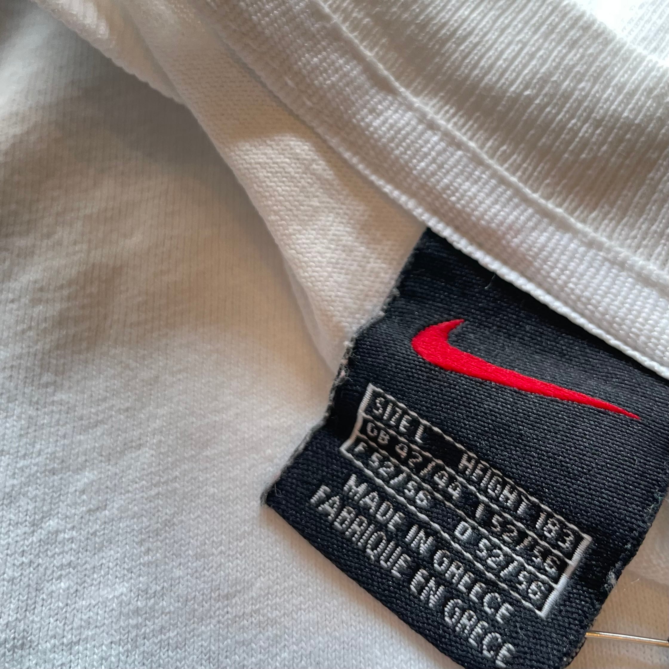 スウッシュ刺繍のみのシンプルなデザインが魅力のNIKEワンポイントTシャツ。希少なギリシャ製ボディで、サイズバランスも良好。クリーンなスタイルにおすすめの一枚です。