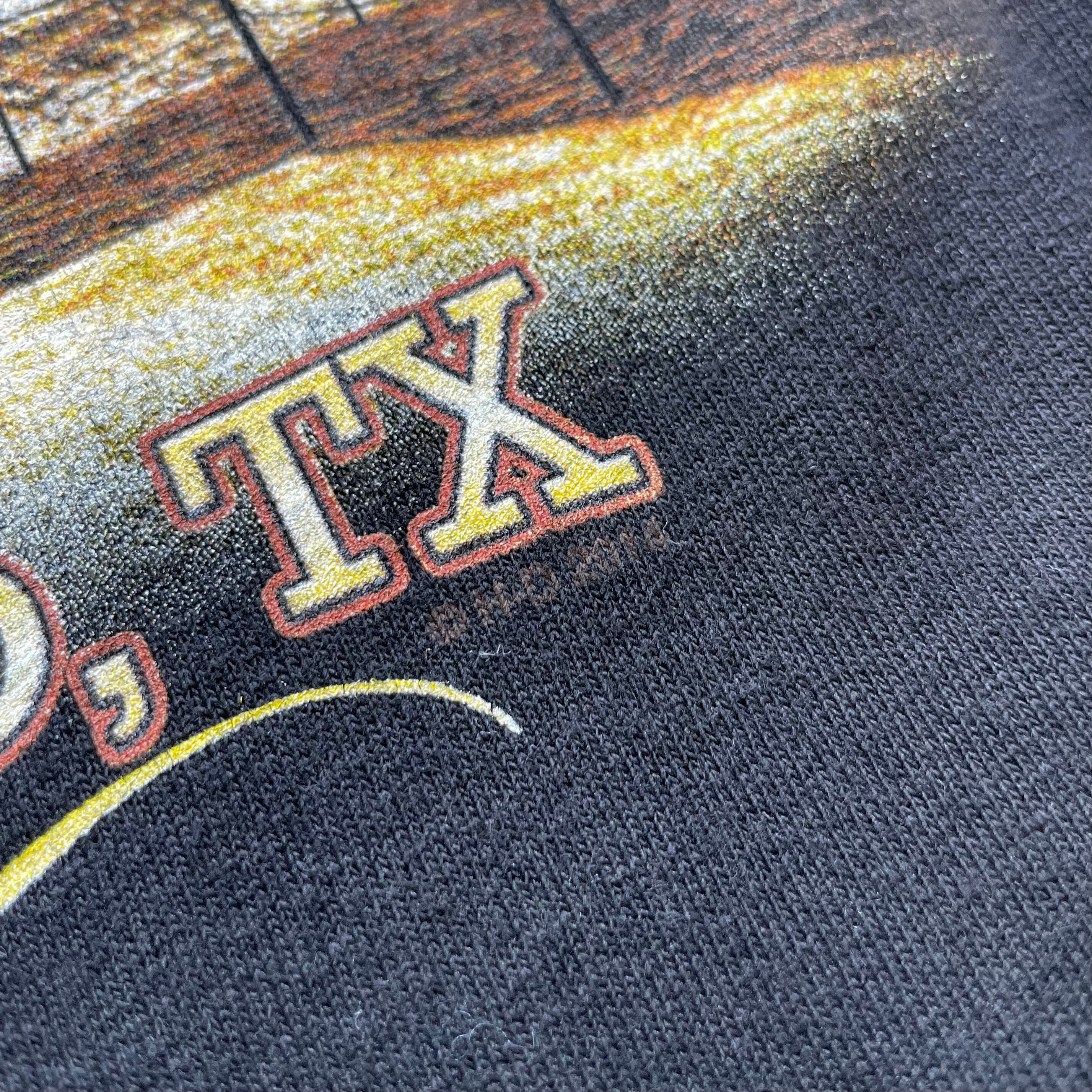 テキサス州サンアントニオのALAMO CITY店のバックプリントが存在感抜群の一枚。フロントは翼モチーフとエンジンパーツが組み合わさったクールかつ古着らしい風合いが魅力のデザイン。