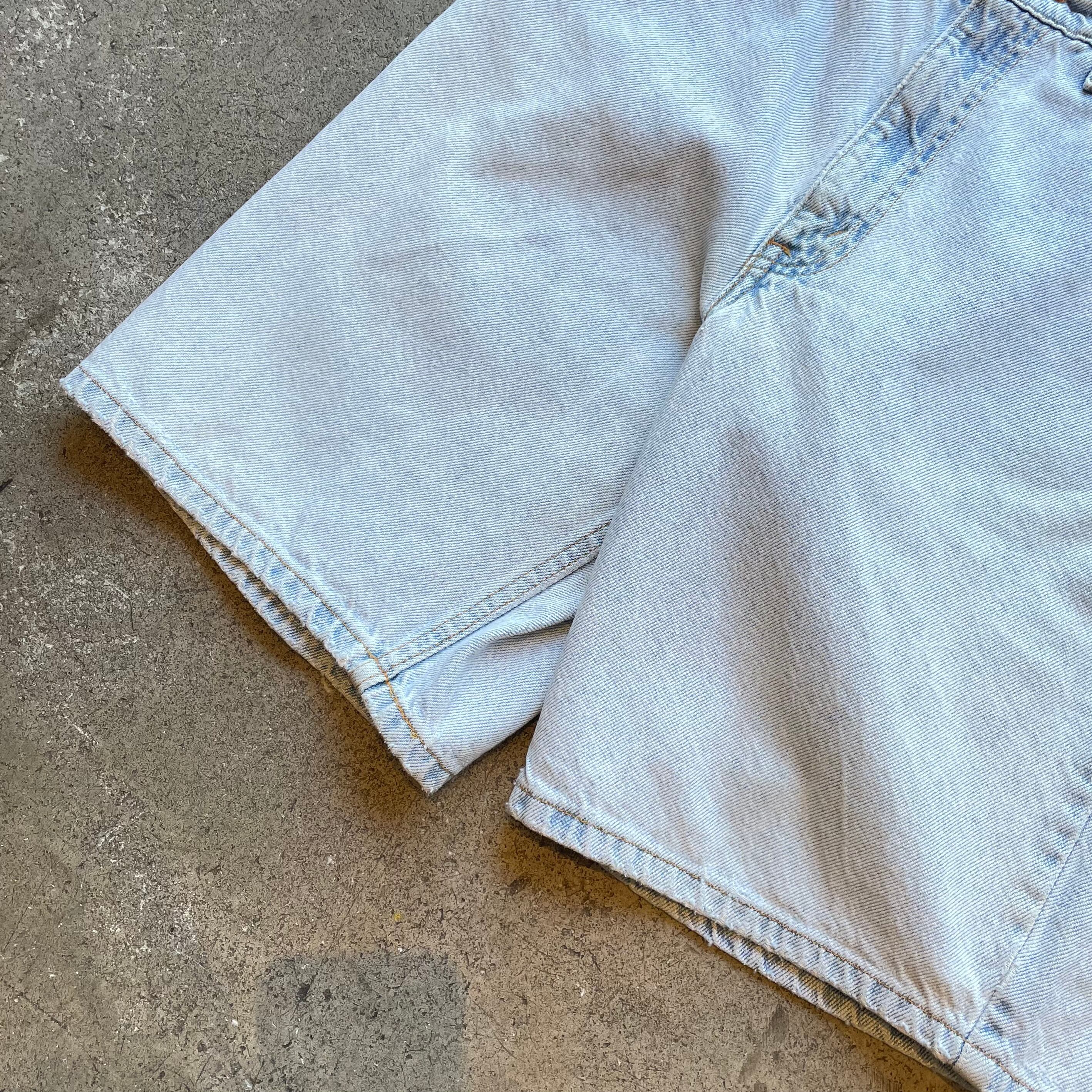 Levi’s 550デニムショーツ。ワイドなシルエットとレングスのバランスが今の気分にマッチする一本。ライトウォッシュが爽やかで夏のTシャツスタイルとも好相性。