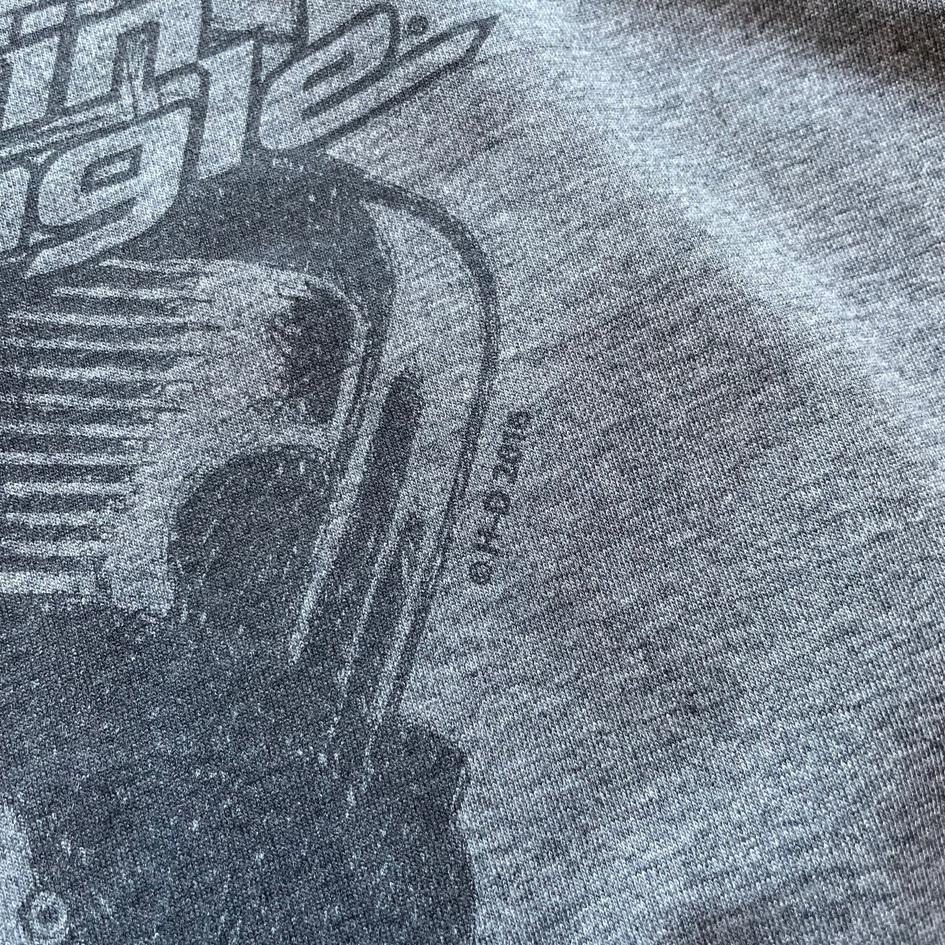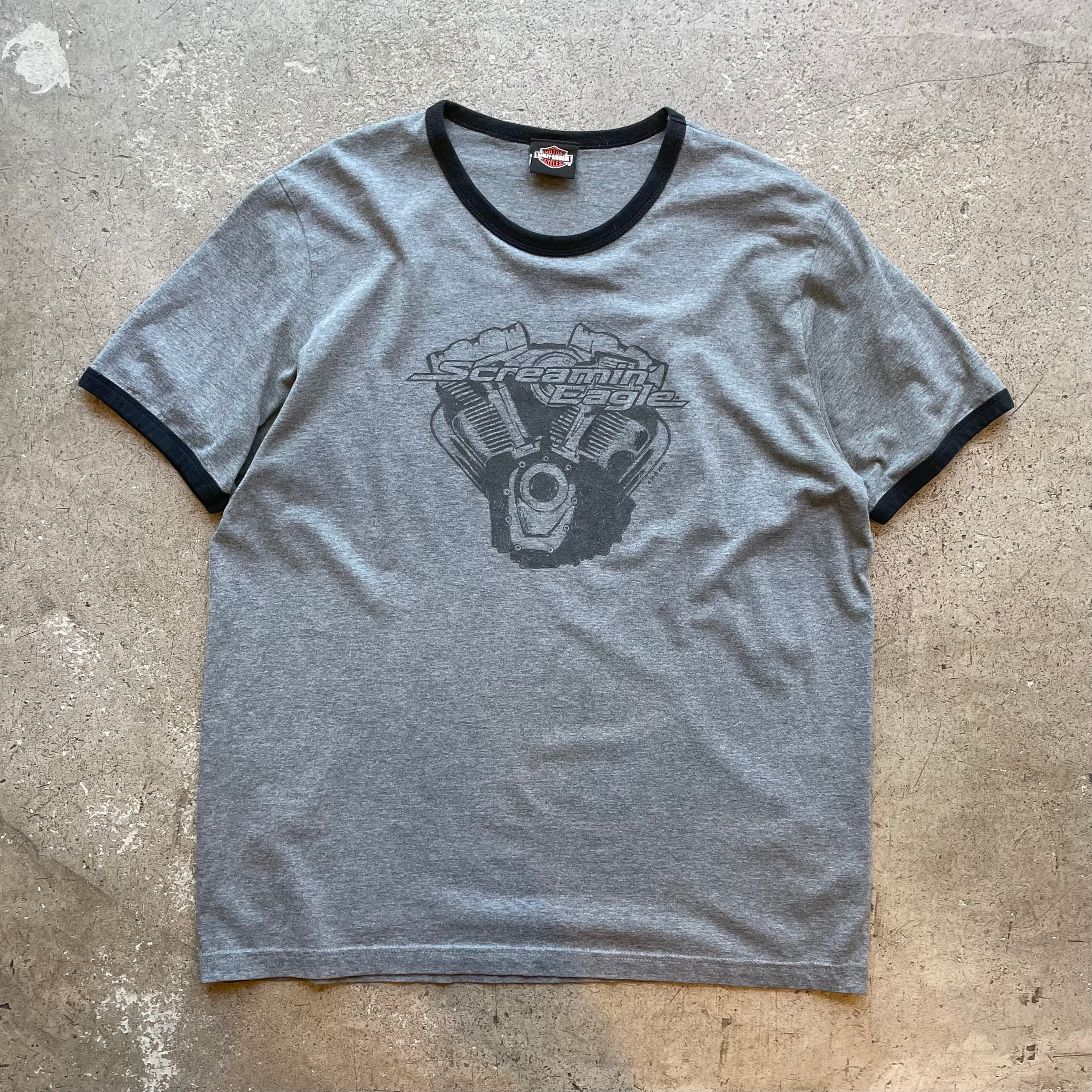 ハーレーダビッドソンのパフォーマンスパーツ「Screamin’ Eagle」のグラフィックがプリントされた一着。モーター×拳のタフなモチーフとリンガー仕様のバイカラーが映えるデザイン。バックにもロゴ入りの希少な仕様です。
