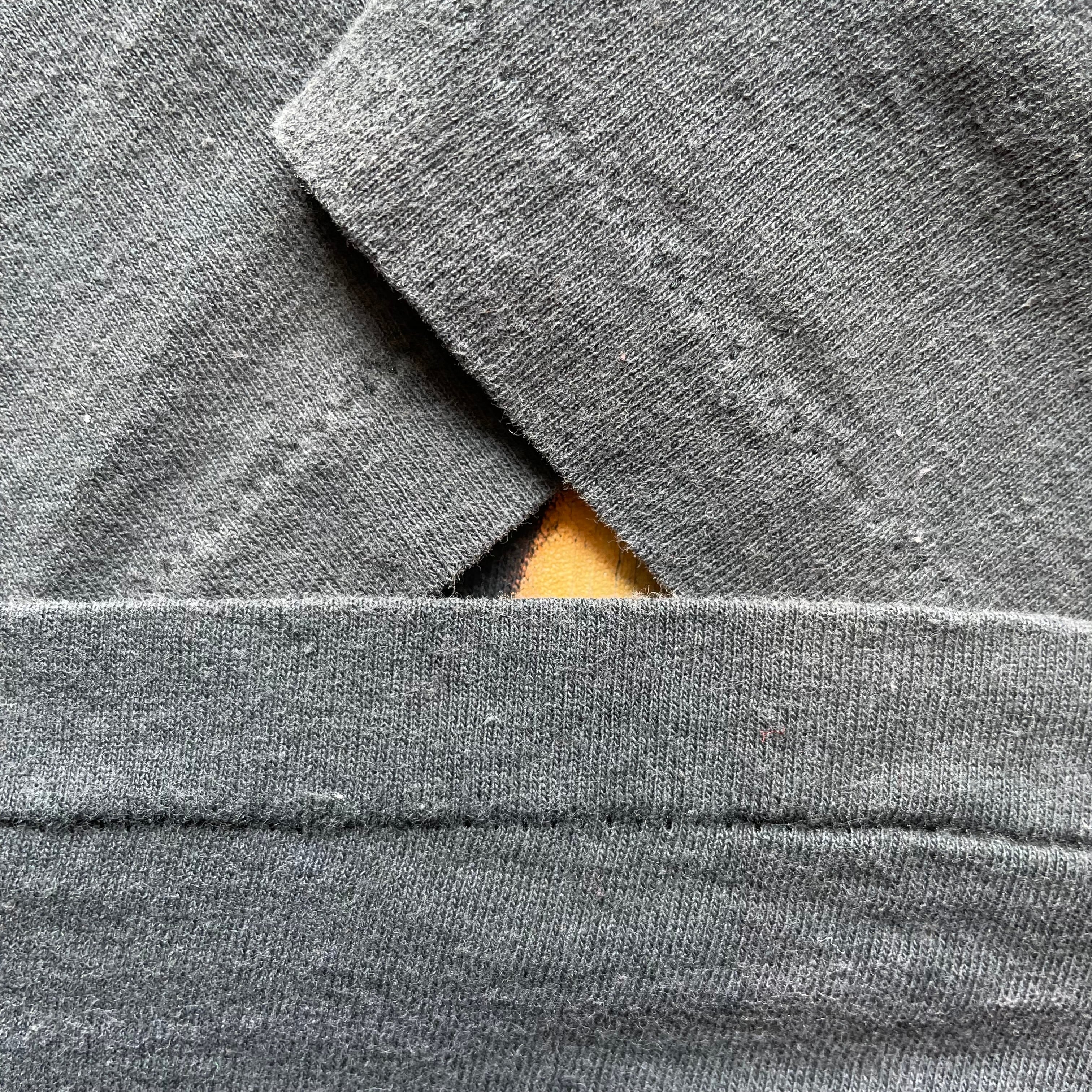 1990年の名盤「JOURNEYMAN」発表に伴うワールドツアーTシャツ。フロントには渋みのあるエリック・クラプトンの肖像、バックには北米ツアースケジュール入りの両面プリント仕様。USA製のHanesボディ、当時物。音楽ファンのみならず90sロックTの名作としてコレクターからの人気も高い。