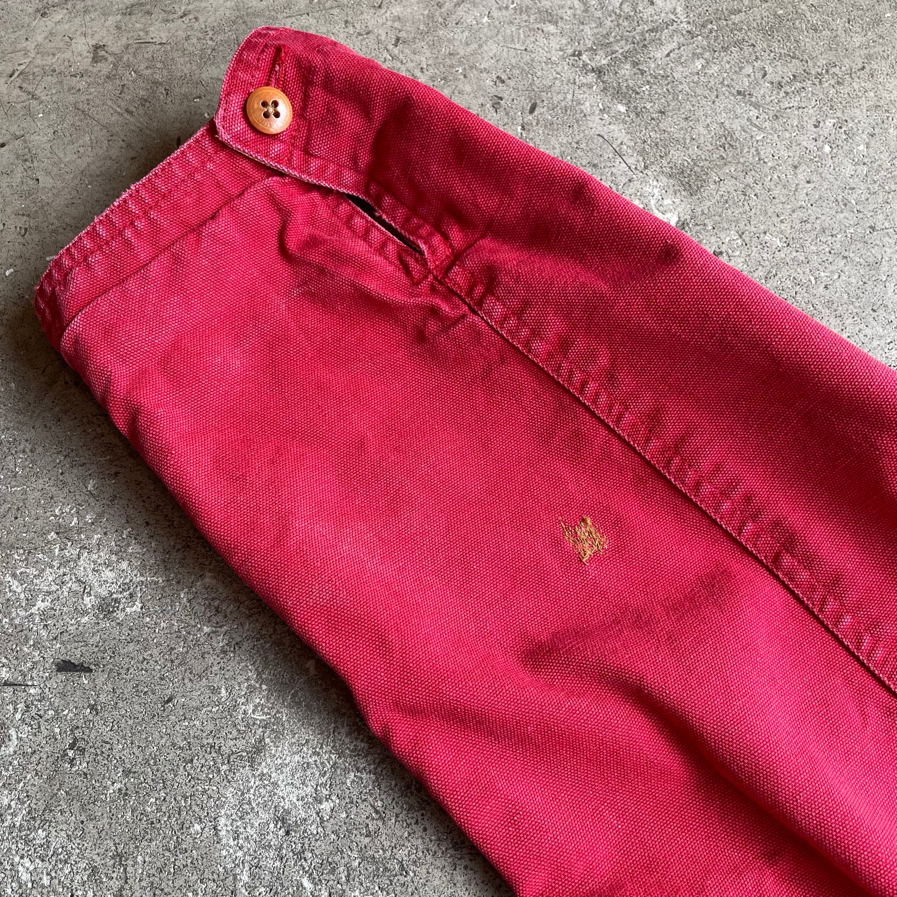 POLO COUNTRYらしい無骨な雰囲気漂うリバーシブルカバーオール。表は深みのあるレッド、裏は淡いベージュのツートーンで気分やコーデに応じて雰囲気を変えられる一着。収納力のある4ポケット仕様で機能性も抜群です。