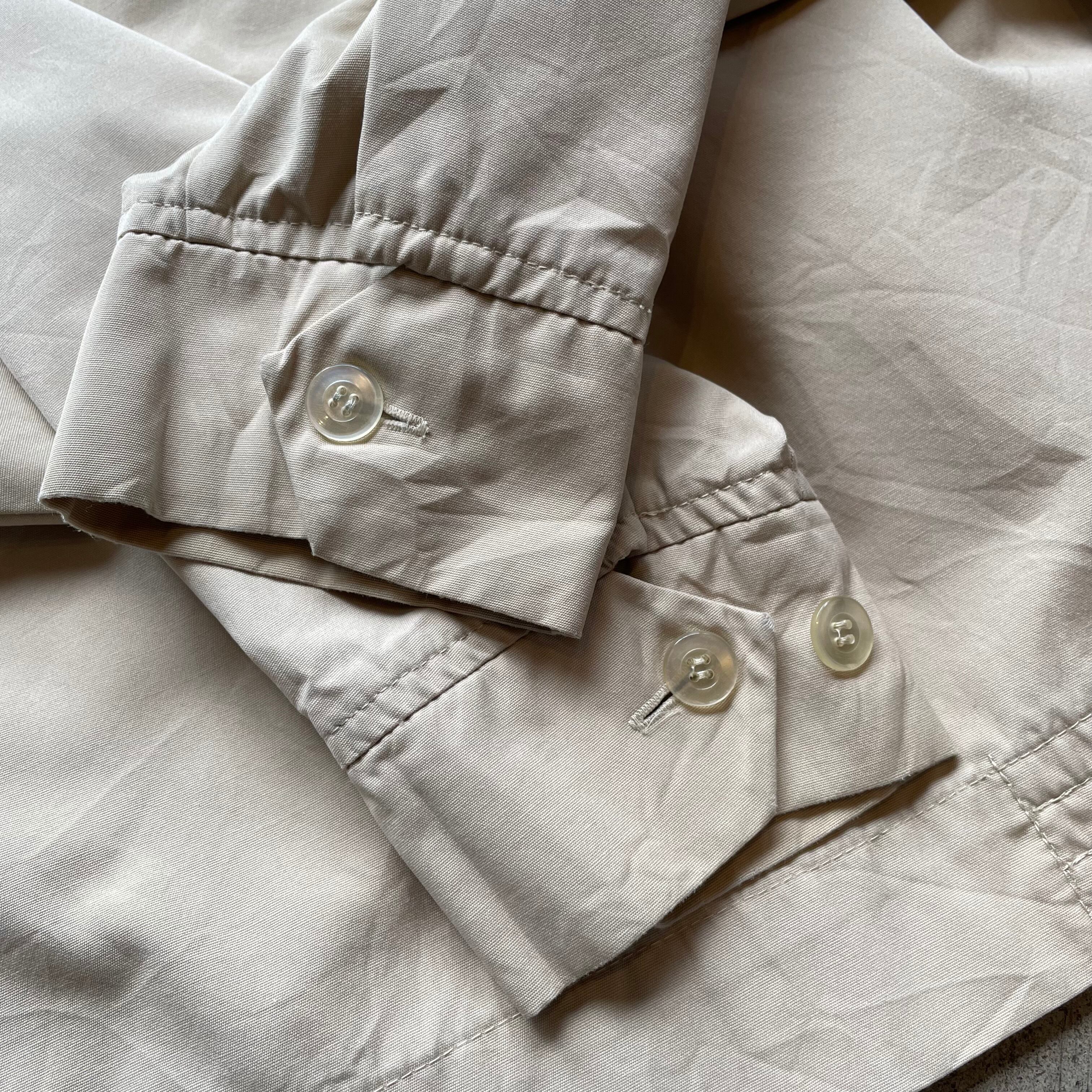 アメリカ市場向けに展開されていたIZOD LACOSTEの90年代ハリントンジャケット。胸元にはラコステのアイコニックなワニロゴ刺繍、ラグランスリーブ仕様で動きやすくヴィンテージらしいゆったりとしたシルエットが特徴。襟元には真珠湾のUSSアリゾナ記念館ピンバッジ付きで当時の持ち主のストーリーを感じられる一着です。