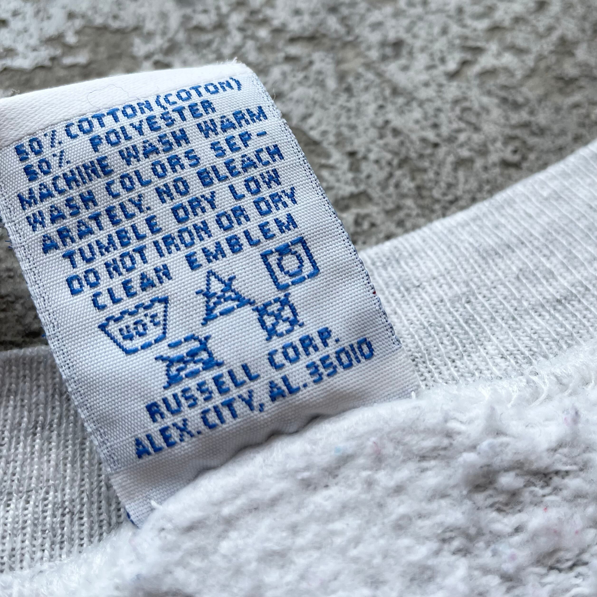 90年代USA製ラッセルの無地クルーネックスウェット。ふっくらとした裏起毛とワイドなシルエットが魅力。シンプルながら存在感ある一着です。