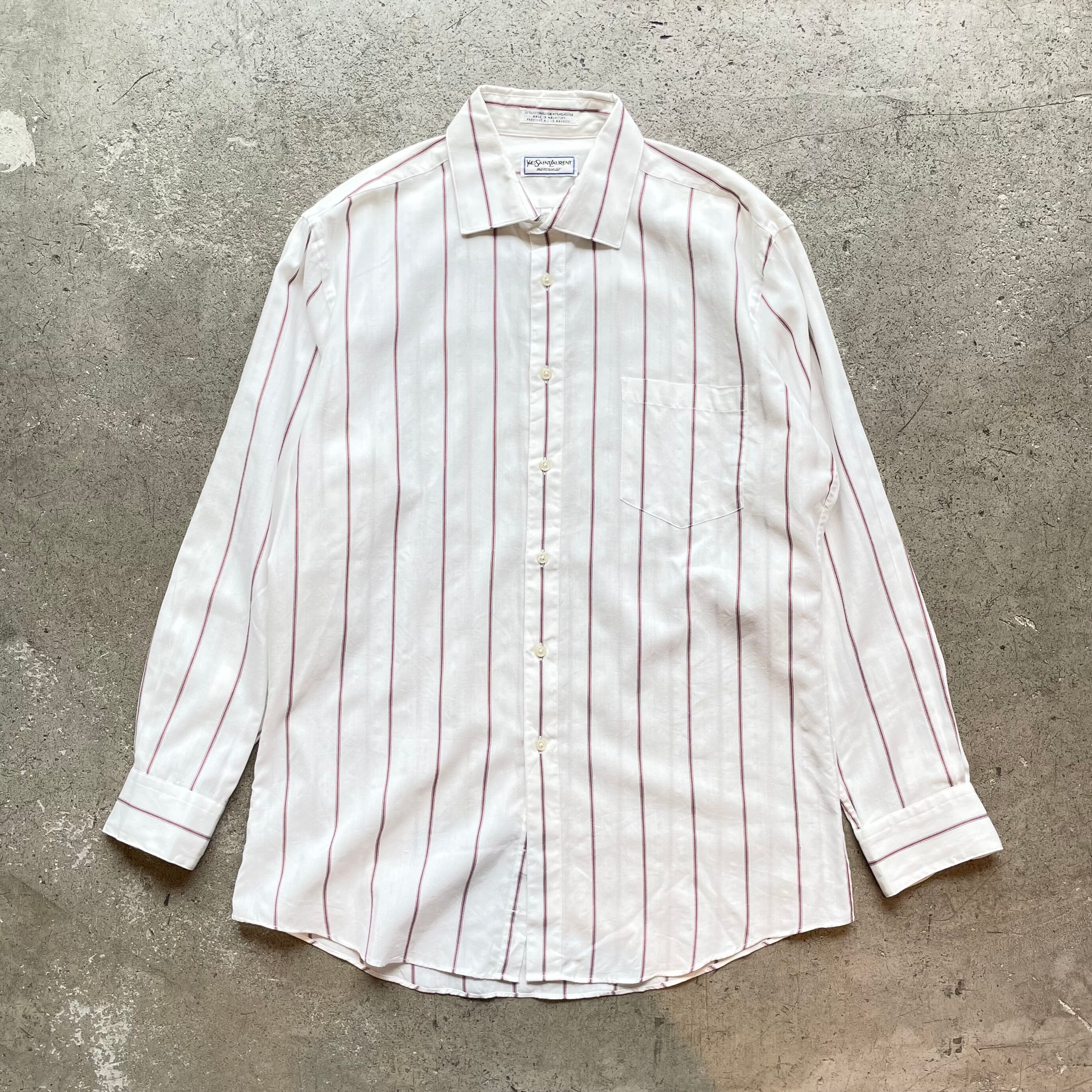 90s Yves Saint Laurent menswear ストライプ柄長袖シャツ M相当 モーリシャス製