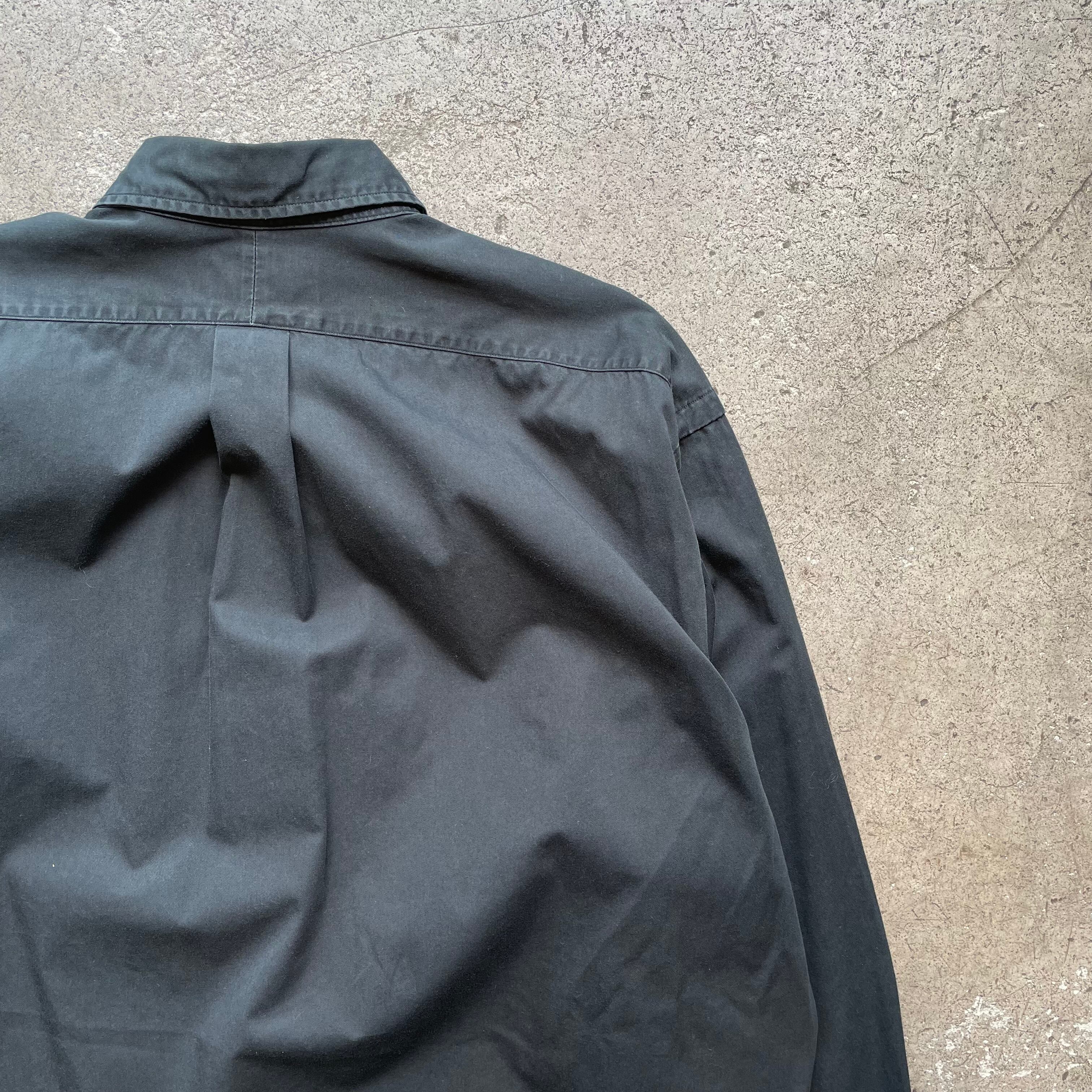 90年代カナダ製のPolo Ralph Laurenボタンダウンシャツ。ブラックボディに映えるレッドのポニーロゴ刺繍が特徴的です。現行モデルとは異なる重厚感のある生地感でカジュアルにもドレスライクにも着こなせる一枚。ヴィンテージラルフを象徴する定番アイテムです。