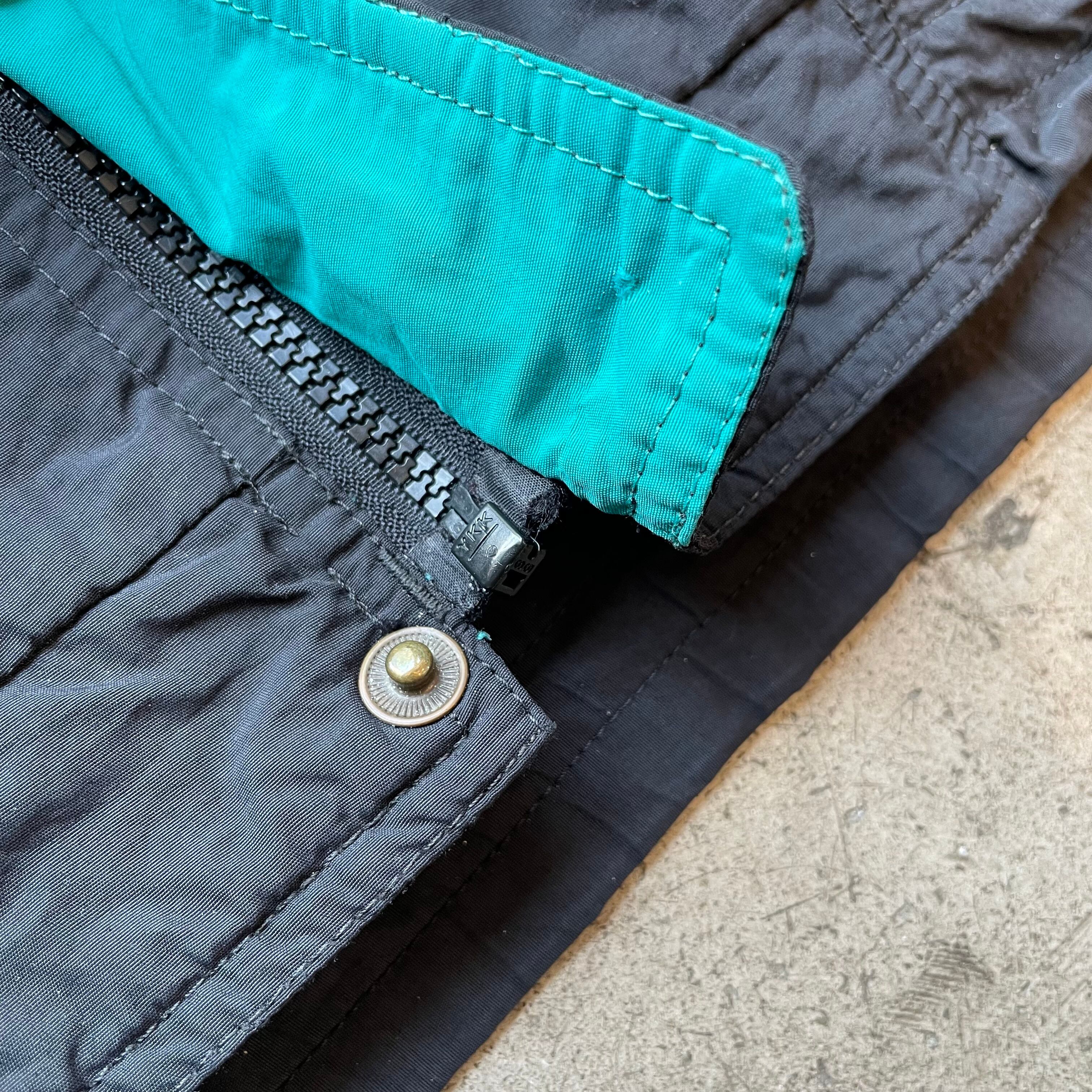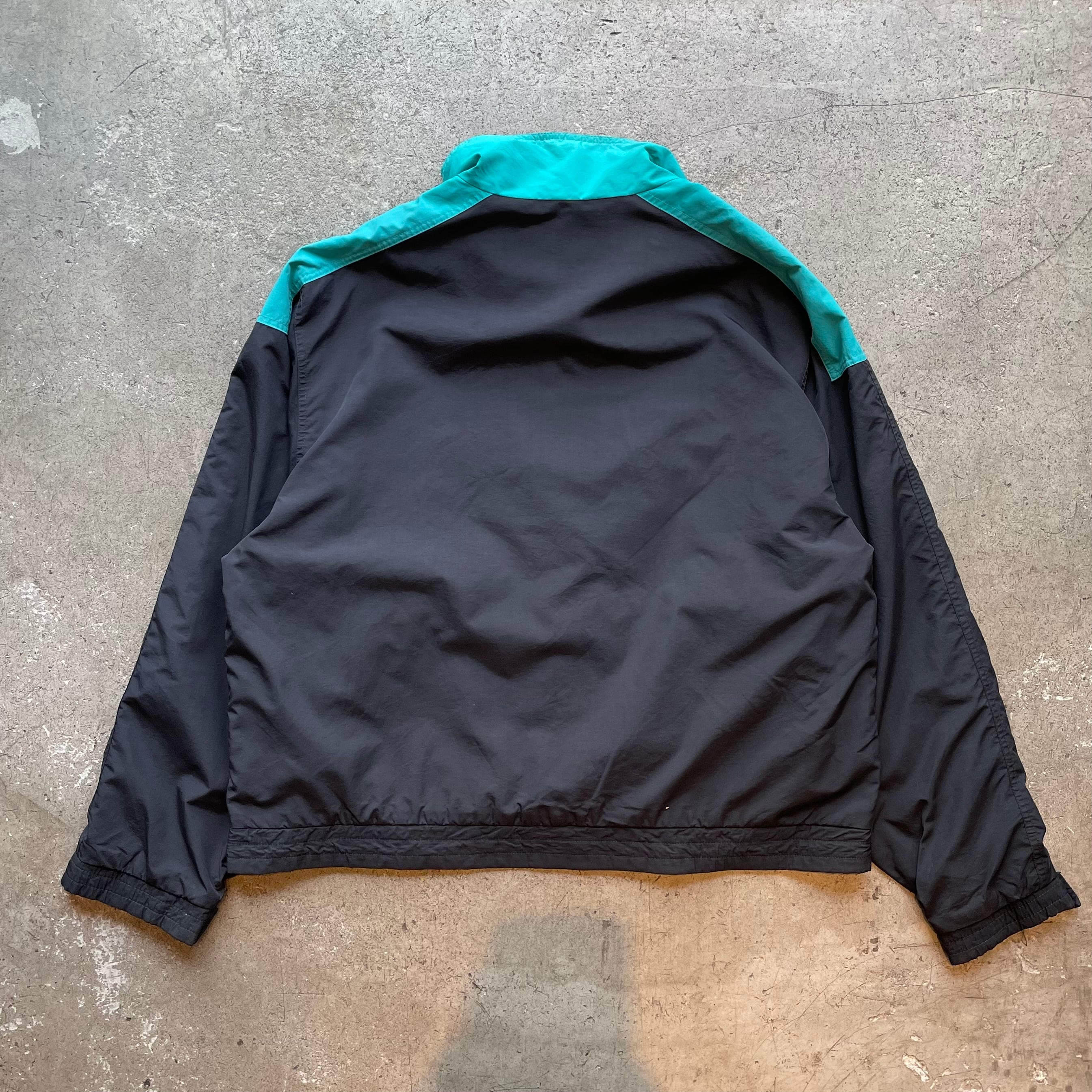 Eddie Bauerらしいアウトドアテイストのナイロンジャケット。ブラックにグリーンの切り替えが映える配色で90sらしい雰囲気を感じられる一着です。シンプルながら存在感のあるデザインでタウンユースからアウトドアシーンまで幅広く活躍。