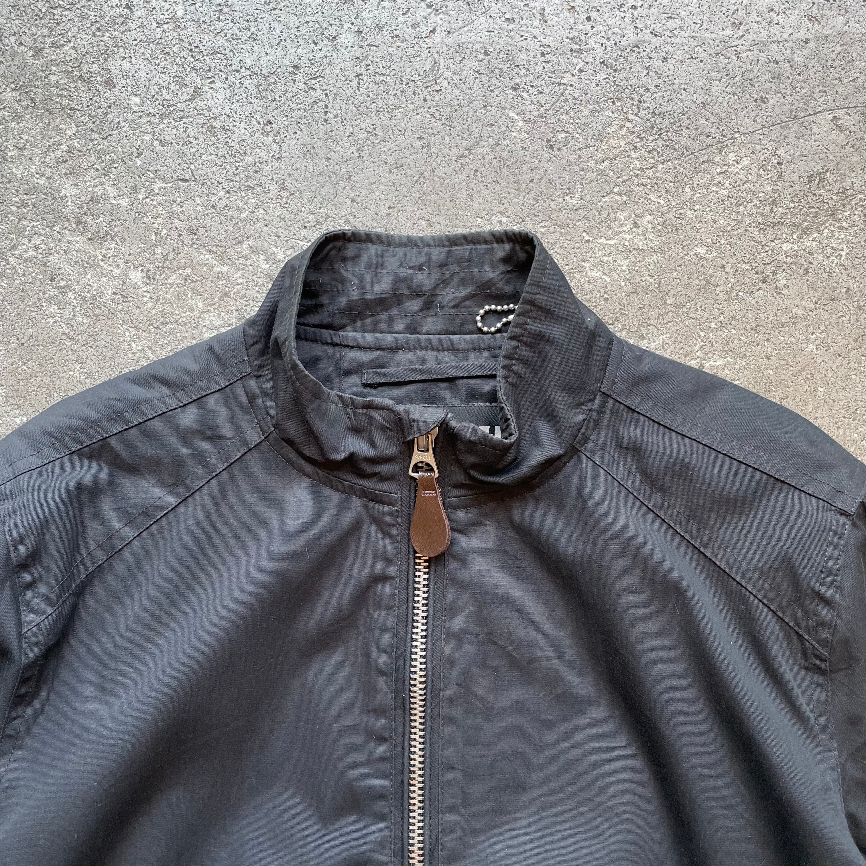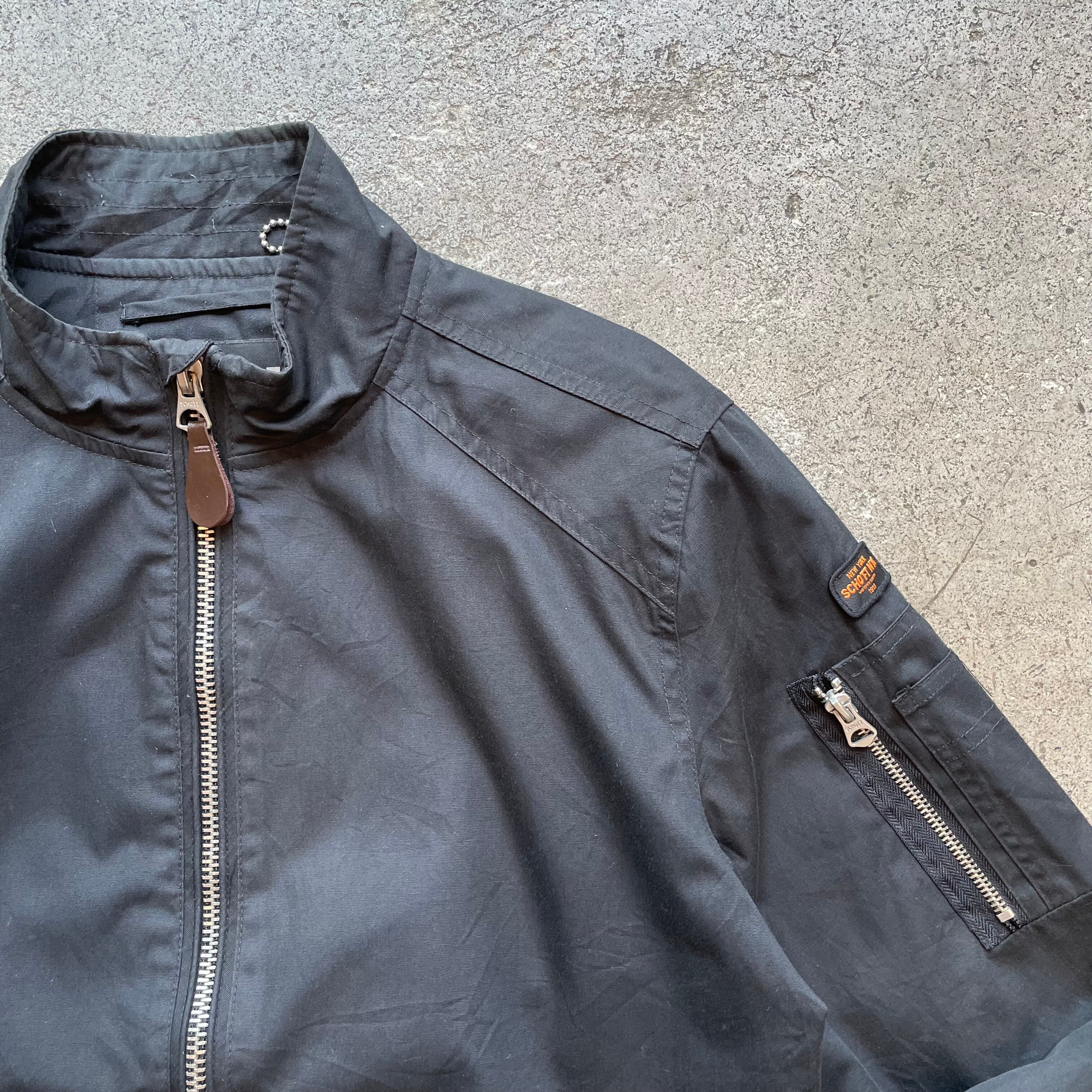 Schottのナイロンブルゾンジャケット。スタンドカラーと程よくシャープなシルエットが特徴で大人のカジュアルスタイルに取り入れやすい一着です。左袖にジップポケット付きでさりげなくMA-1のディテールを感じさせるデザイン。軽量かつ扱いやすい素材感で春先や秋口に重宝します。