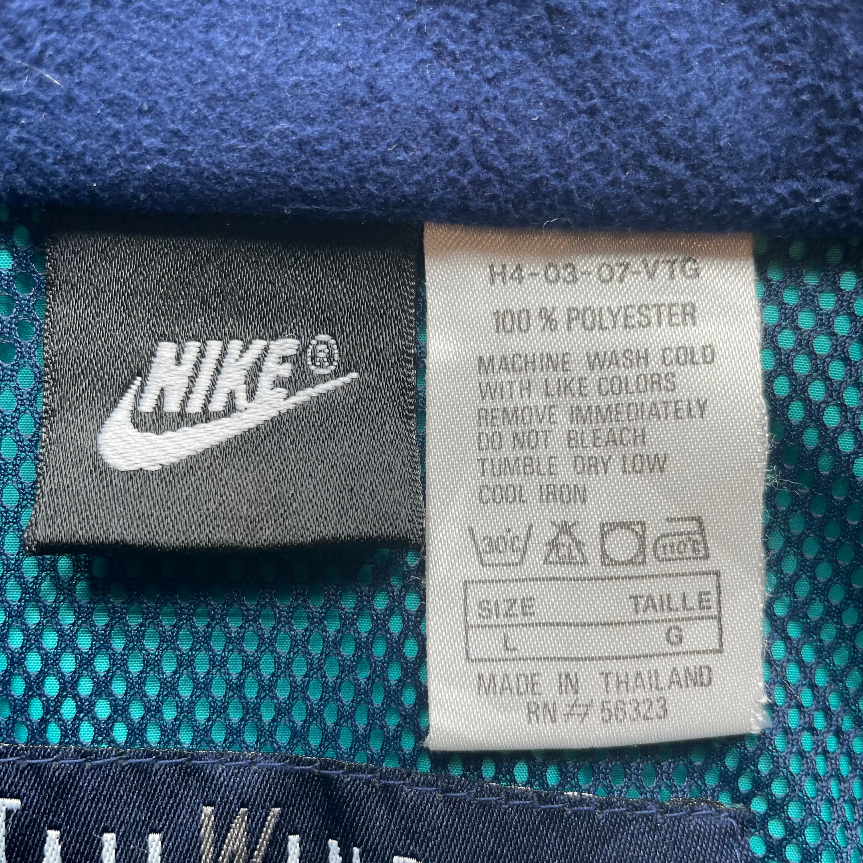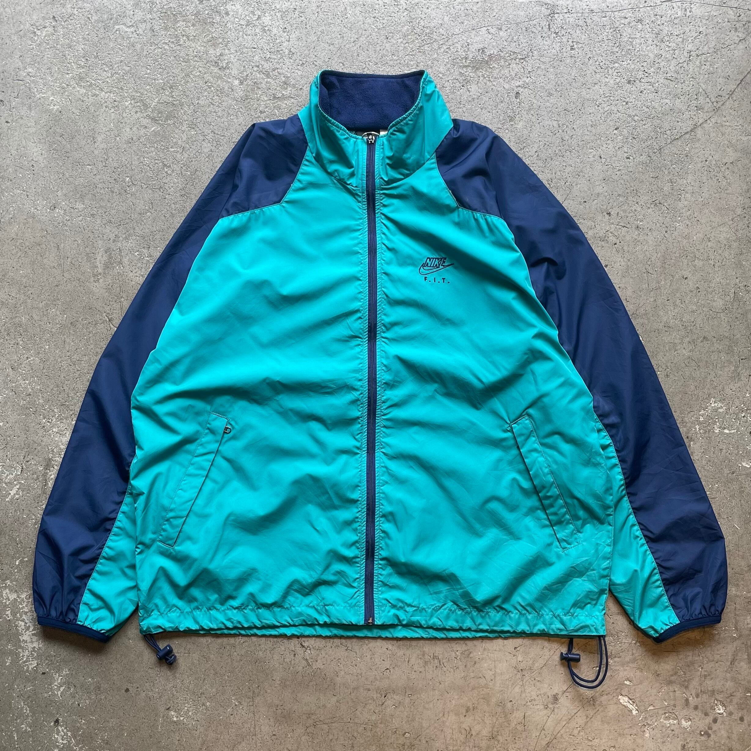 90年代NIKE「Tailwind」シリーズのナイロンジャケット。ターコイズブルーとネイビーの鮮やかな切替に裾のドローコード仕様が特徴的。ランニングシーンを意識したF.I.T.テクノロジー搭載で当時の機能性とデザイン性を兼ね備えた一着。ストリートやスポーツMIXスタイルにおすすめです。