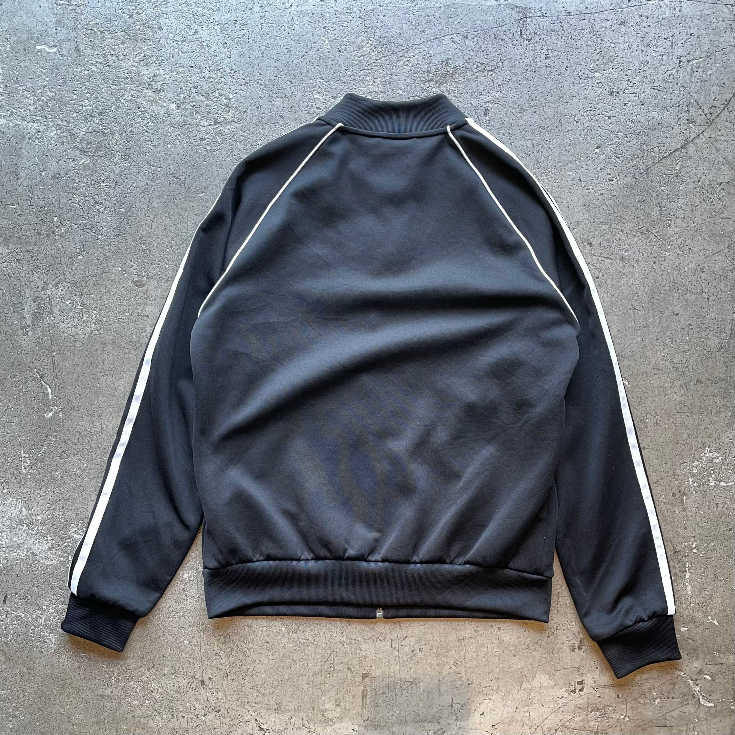 トレンドの「ミニマル」スタイルにぴったりなブラックトラックジャケット。adidasの象徴である3ストライプとトレフォイルロゴをシンプルに配置した都会的で洗練されたデザインが魅力です。表記はレディース12ですが実寸的にはメンズS〜M程度でユニセックスに着用可能。無駄のないルックスはモードにもストリートにも相性抜群です。