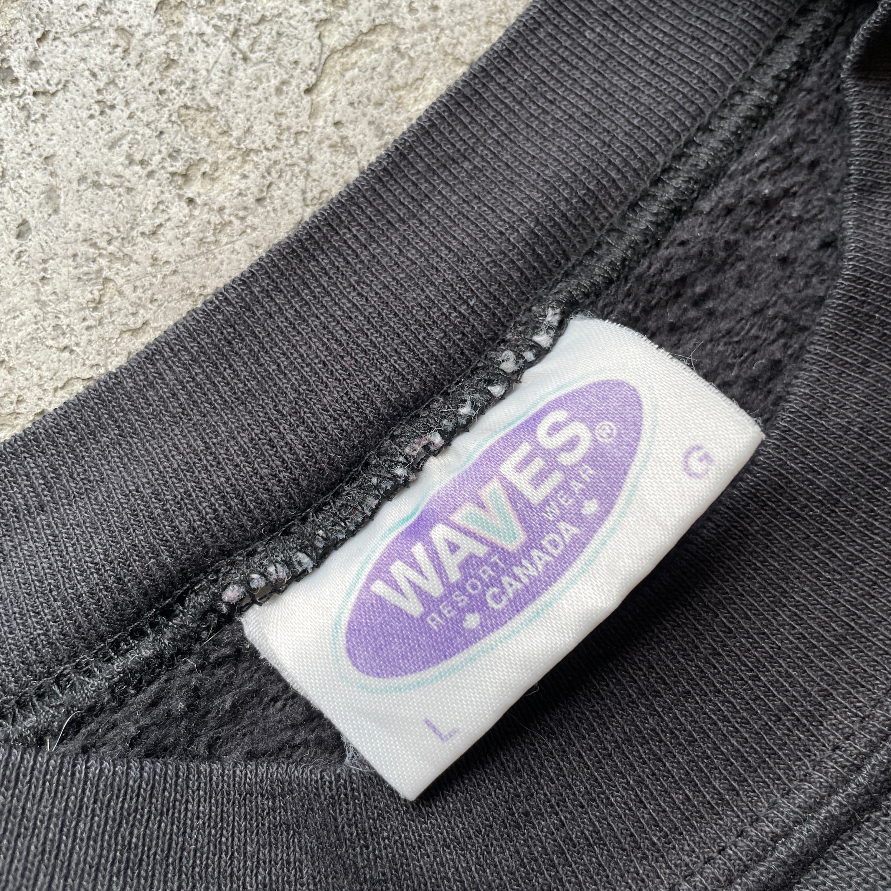 1990年代のBudweiser(バドワイザー)スウェット。「KING OF BEERS」のキャッチコピーとボトルモチーフが大胆にデザインされた1枚。カナダ製のWAVESボディを使用し、厚手の裏起毛で当時のビール広告グラフィックを再現。ストリートスタイルやヴィンテージMIXにも映える存在感のあるプリントスウェットです。