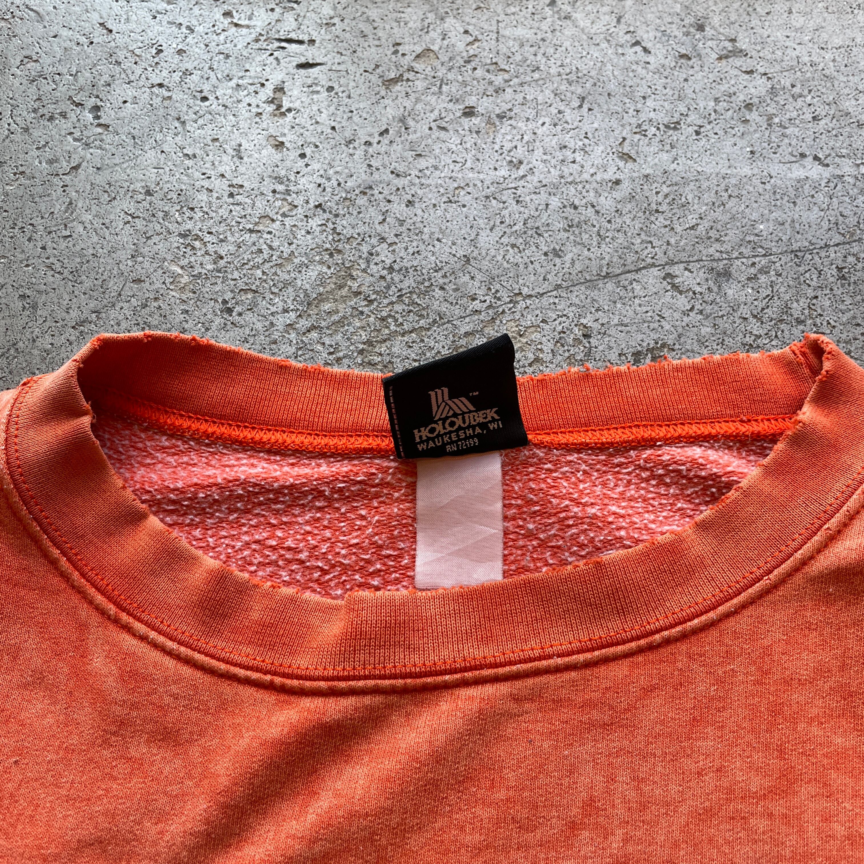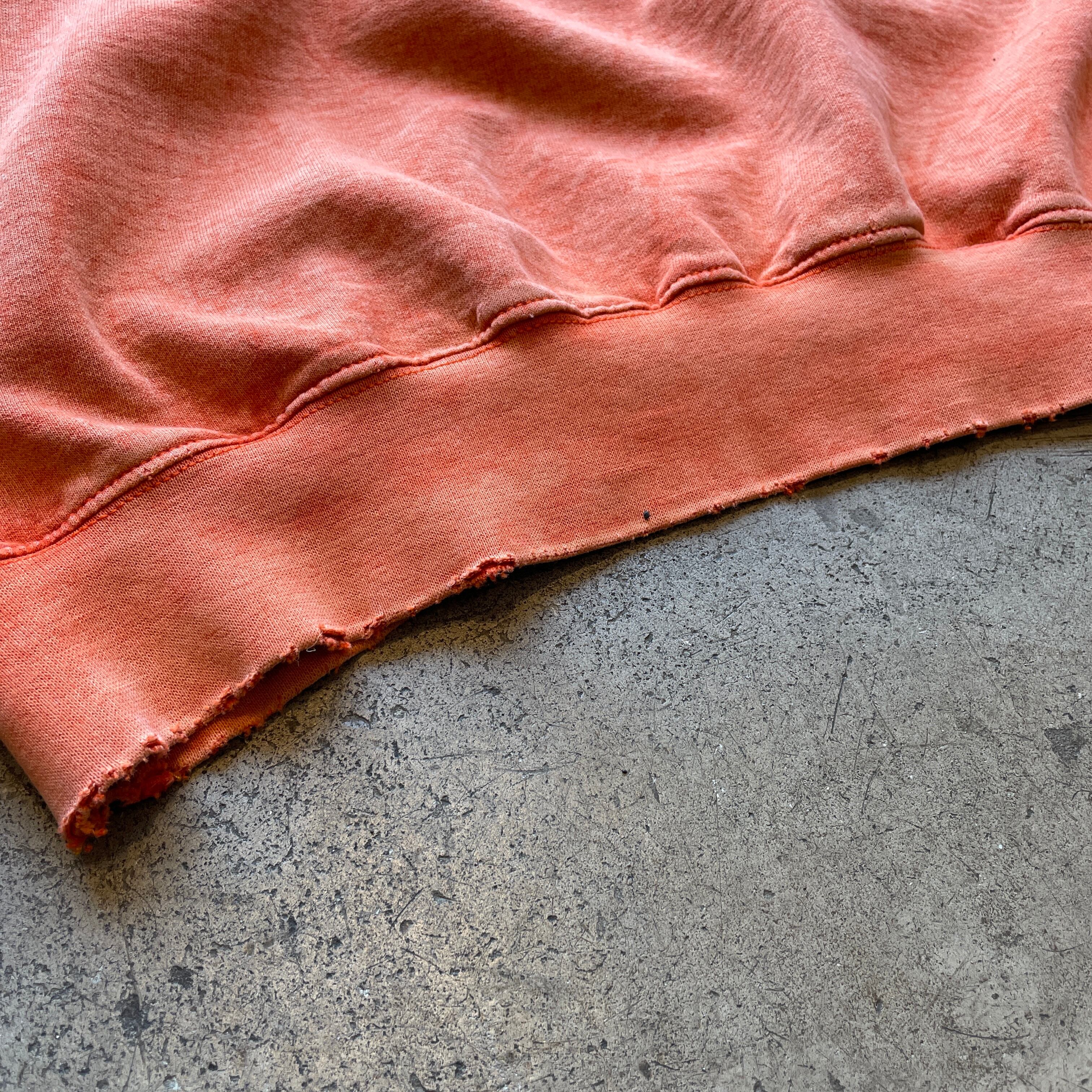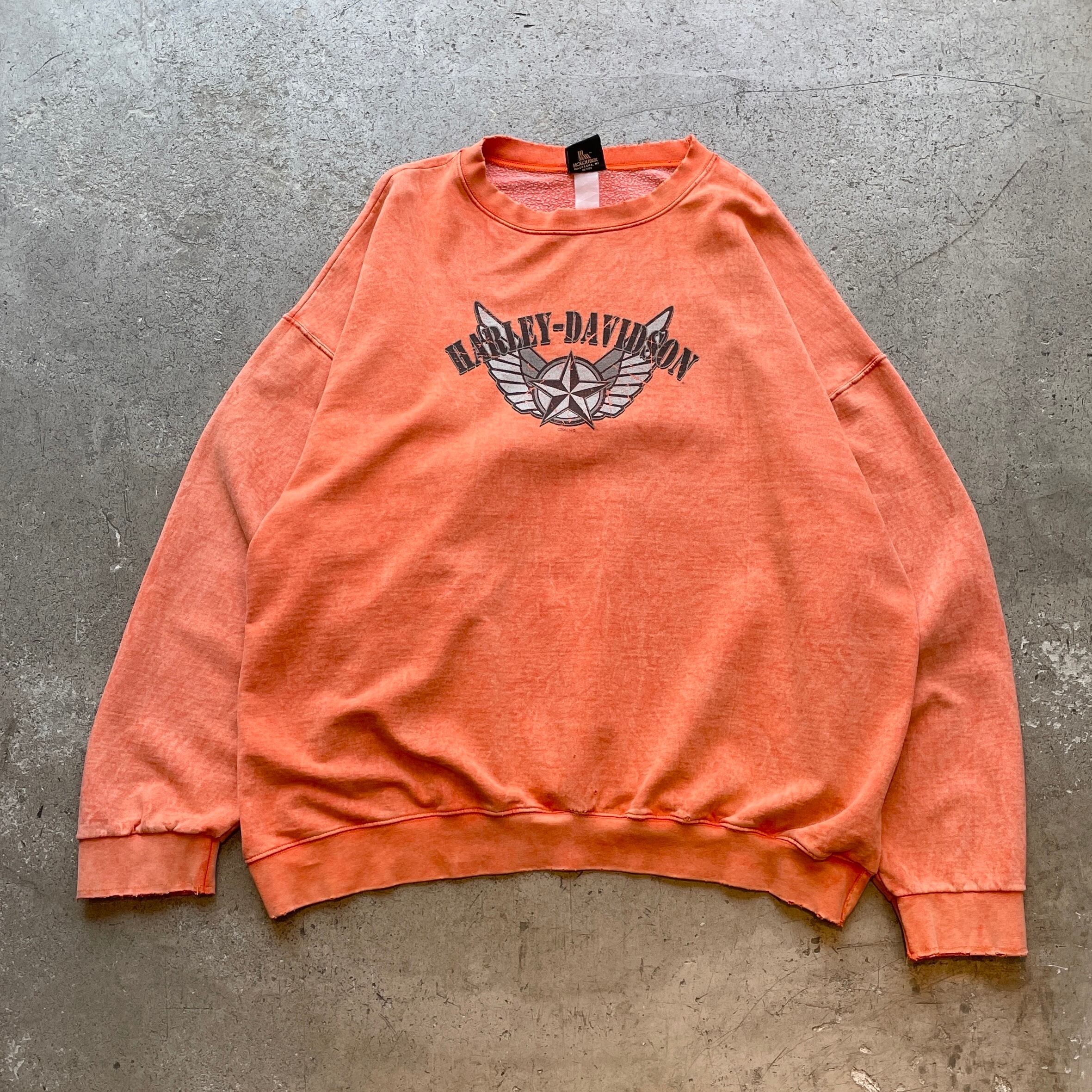 2000年代製、HARLEY-DAVIDSONの両面プリントスウェット。バックにはイーグル×エンジンの迫力あるグラフィックが施され存在感抜群の一枚。フェードしたオレンジボディが古着らしい味わいを引き立てています。