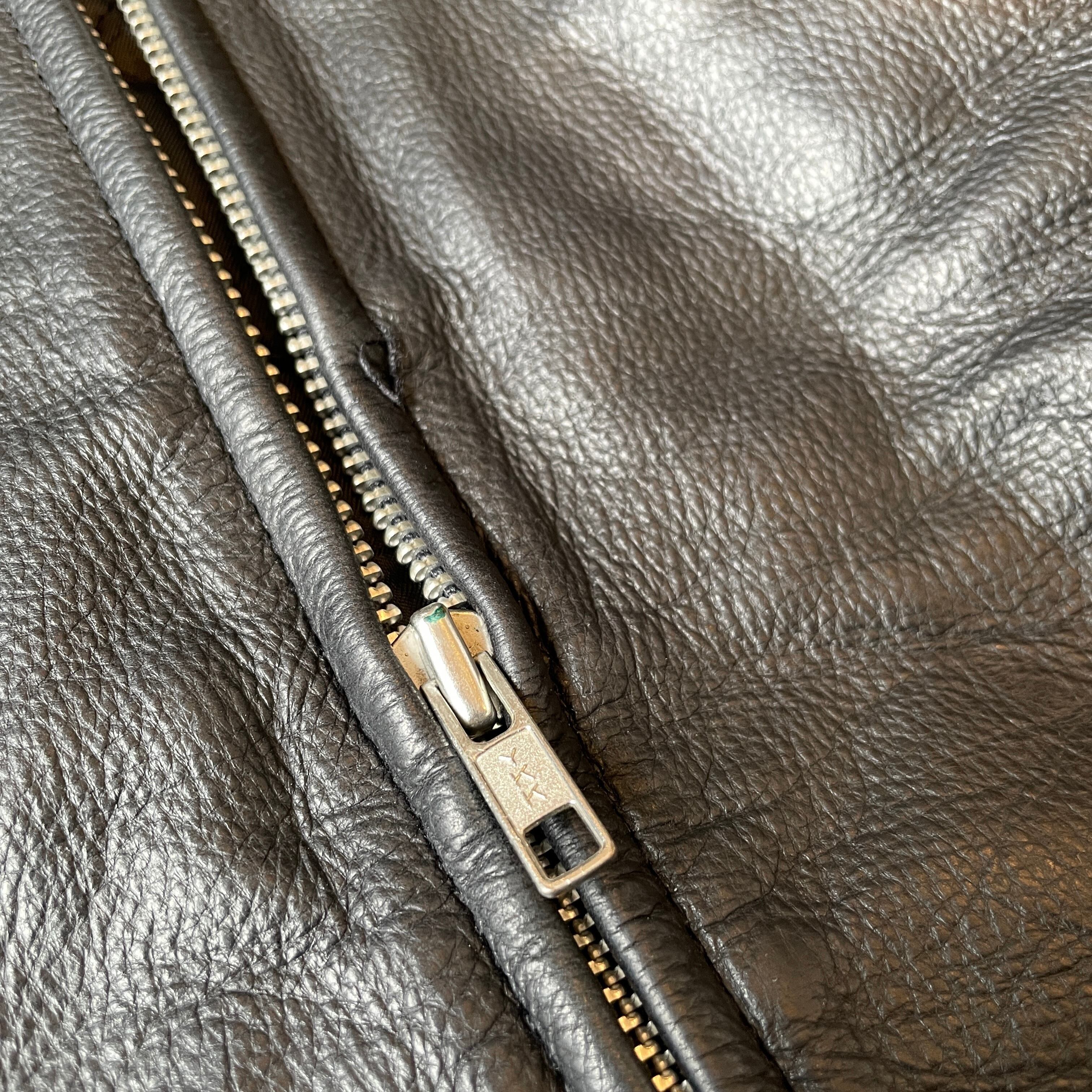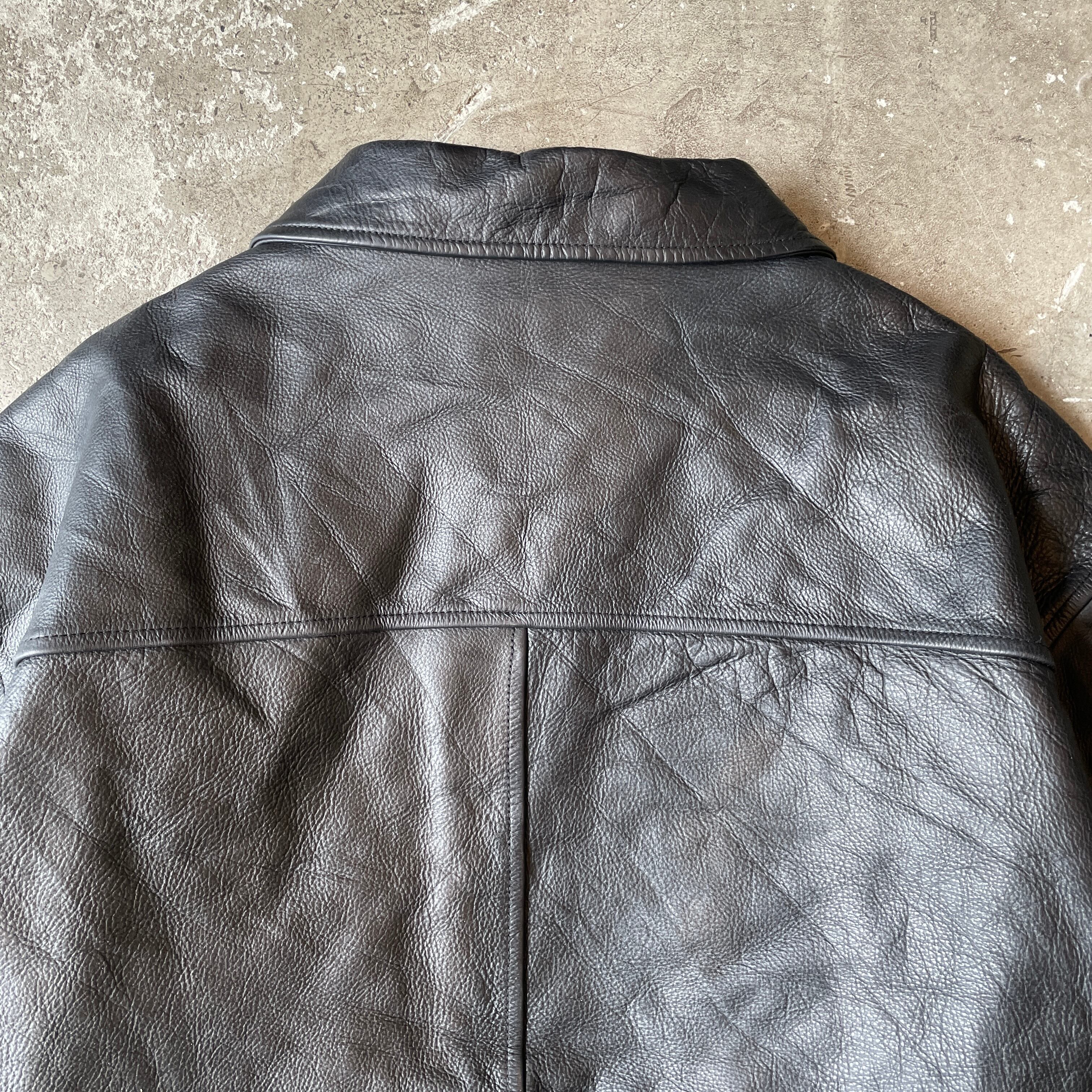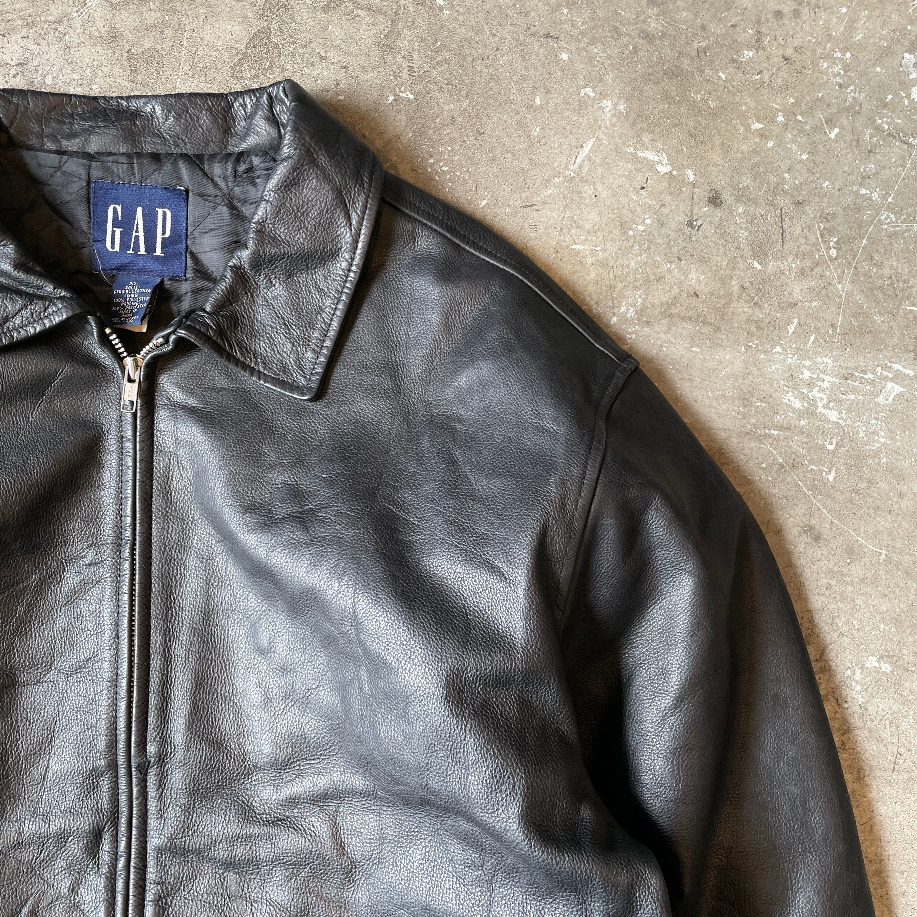 90年代GAPのレザージャケット。しなやかなカウレザーを使用したシンプルなデザインで無骨ながらも上品な雰囲気を持つ一着。ややゆったりとしたシルエットにキルティングライナーを採用し保温性も確保。