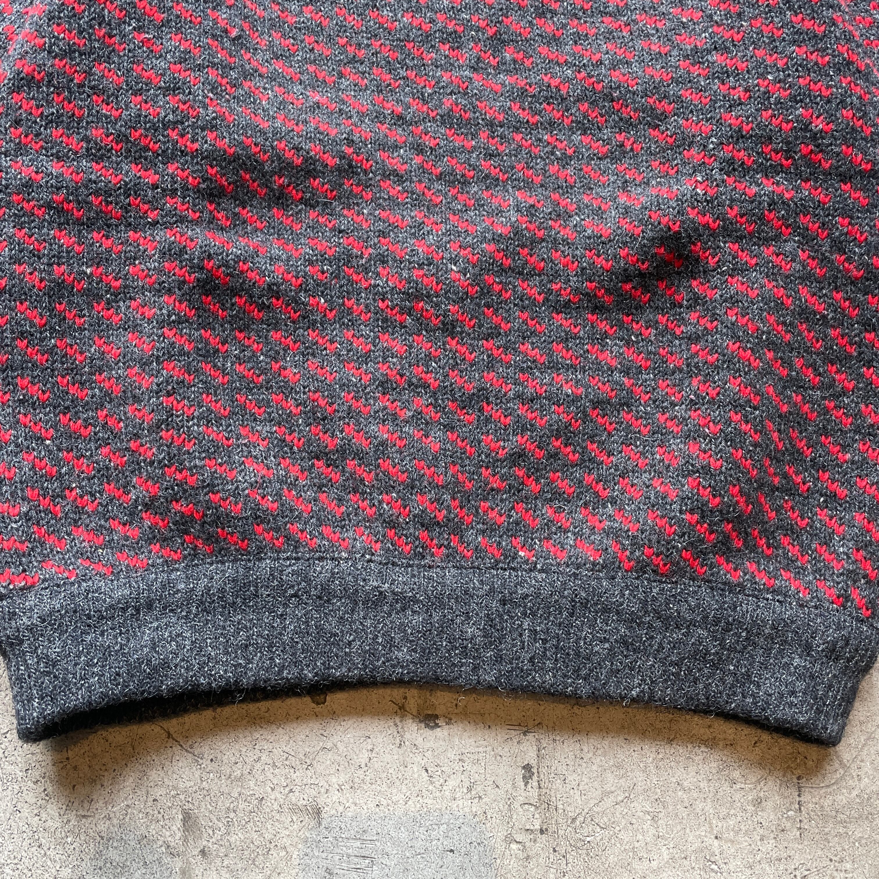 80年代ノルウェー製 L.L.Beanのバーズアイセーター。北欧伝統のバーズアイ柄を採用し、細かなドットが立体的に浮かぶ上質な編み地が特徴。厚みのあるウール生地で防寒性に優れ、アウトドアからトラッドスタイルまで幅広く活躍します。レッド×チャコールのコントラストが美しく、L.L.Beanの中でも人気の高い名作モデルです。