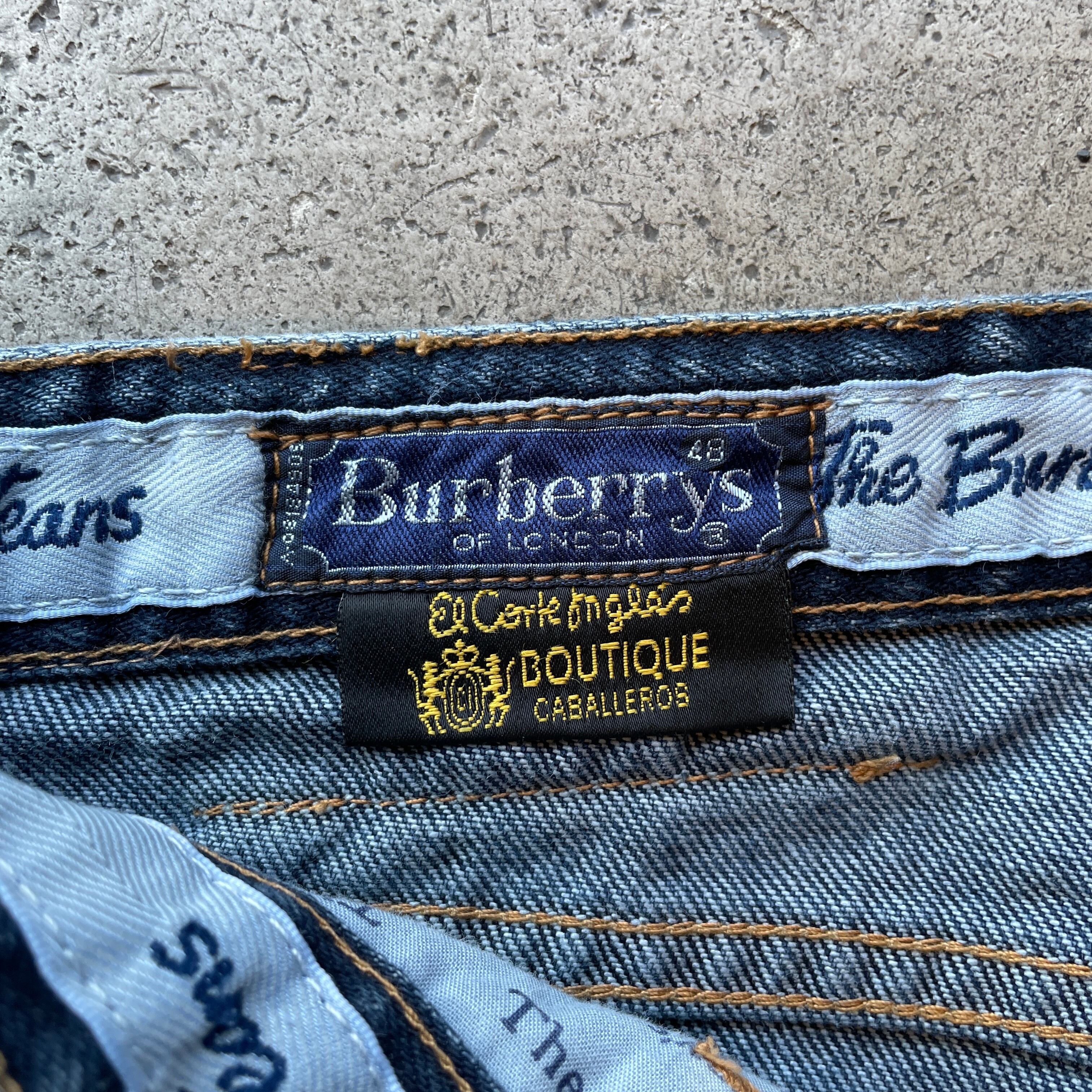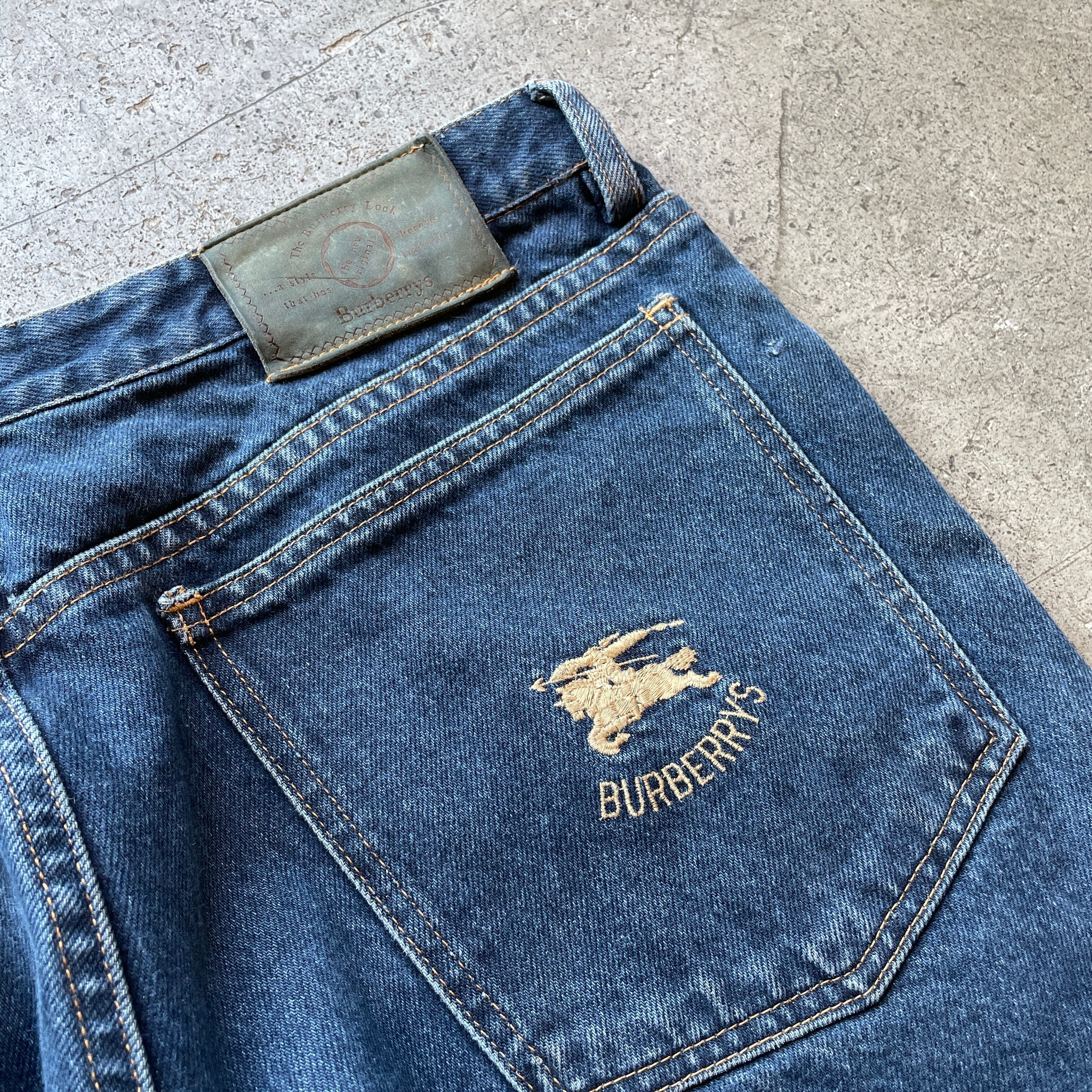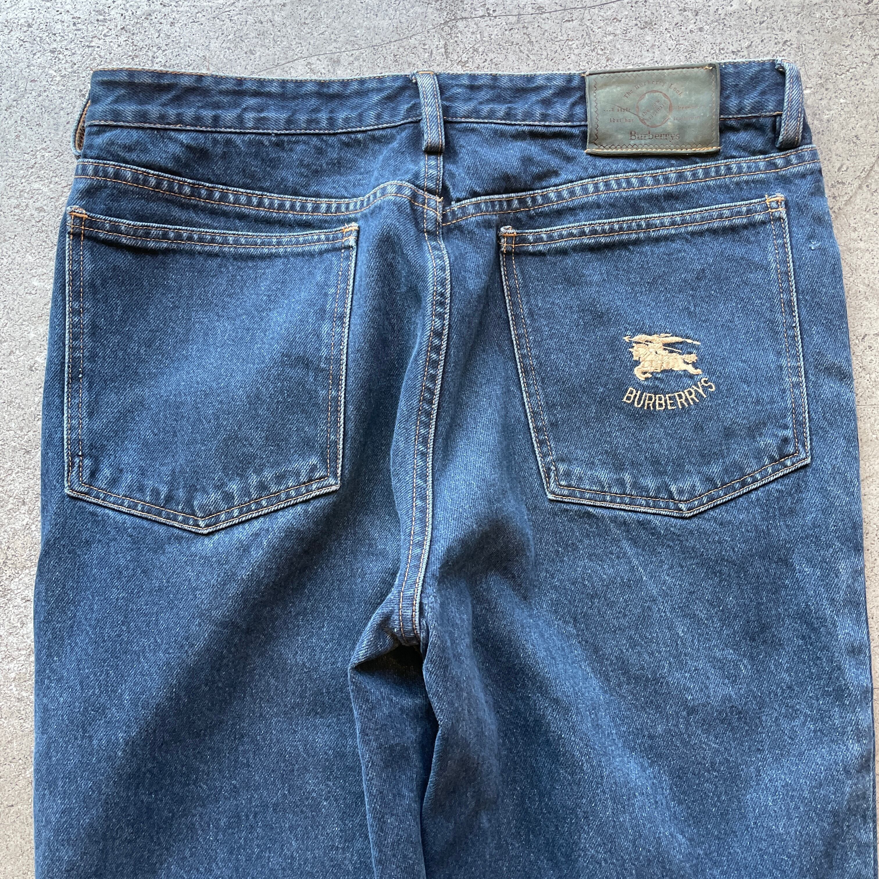 90年代「Burberrys of London」よりスペイン代理店「El Corte Inglés」流通のデニムパンツ。バックポケットにはナイト騎士ロゴ刺繍入り。ストレートシルエットの程よいワイド感とノンウォッシュ寄りの濃いインディゴが魅力。ブランド初期ロゴ“Burberrys”表記の希少な1本でヨーロッパライン特有のクラシックな仕立てもポイント。