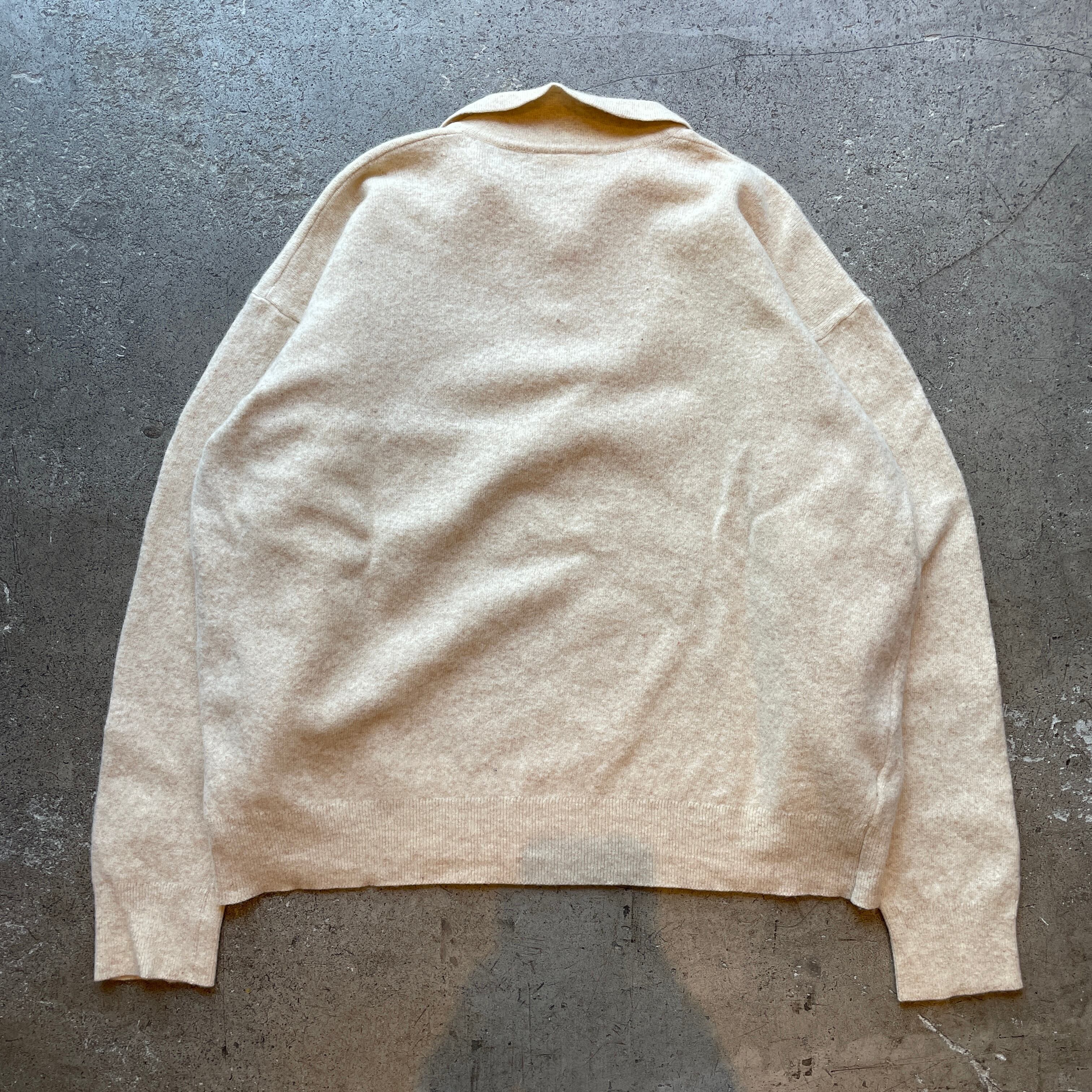 90年代「CHEMISE LACOSTE」スペイン製のラムウールポロニット。ふんわりとした柔らかな質感と温かみのあるベージュカラーが魅力。肩の落ちたリラックスシルエットにより抜け感のある上品なスタイルを演出します。一枚でもレイヤードでも活躍する万能アイテム。