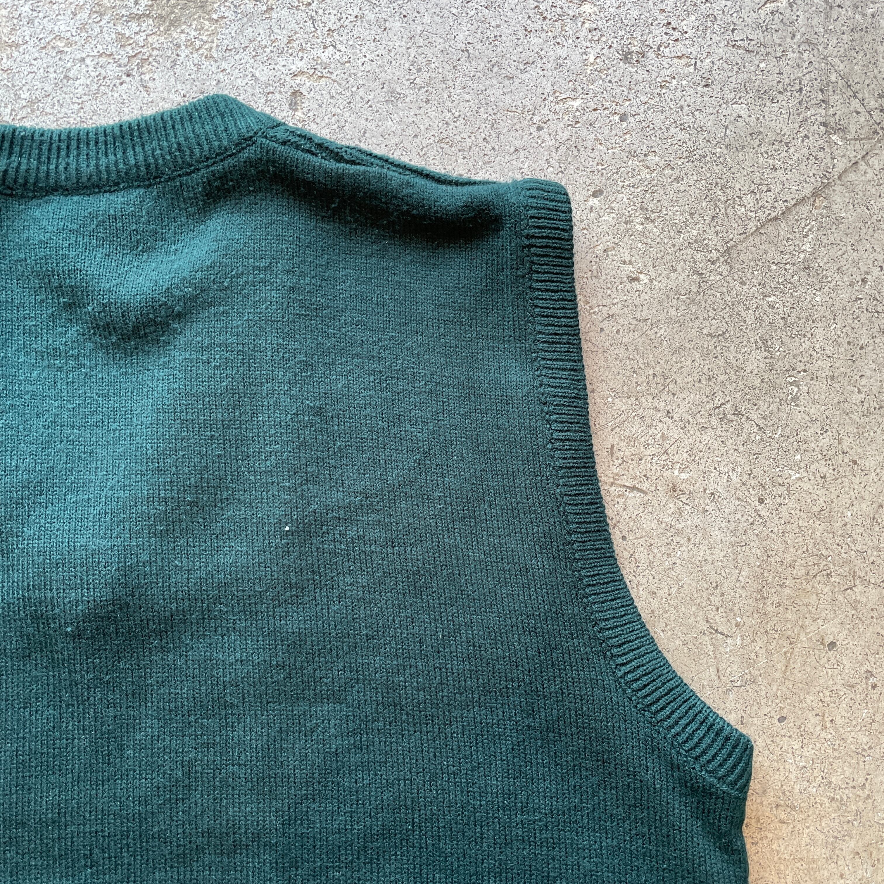 1970年代「CHEMISE LACOSTE」フランス製のコットンニットベスト。リブとプレーン編みを組み合わせた立体的なデザインが特徴で上質なコットン素材ならではの柔らかな風合い。