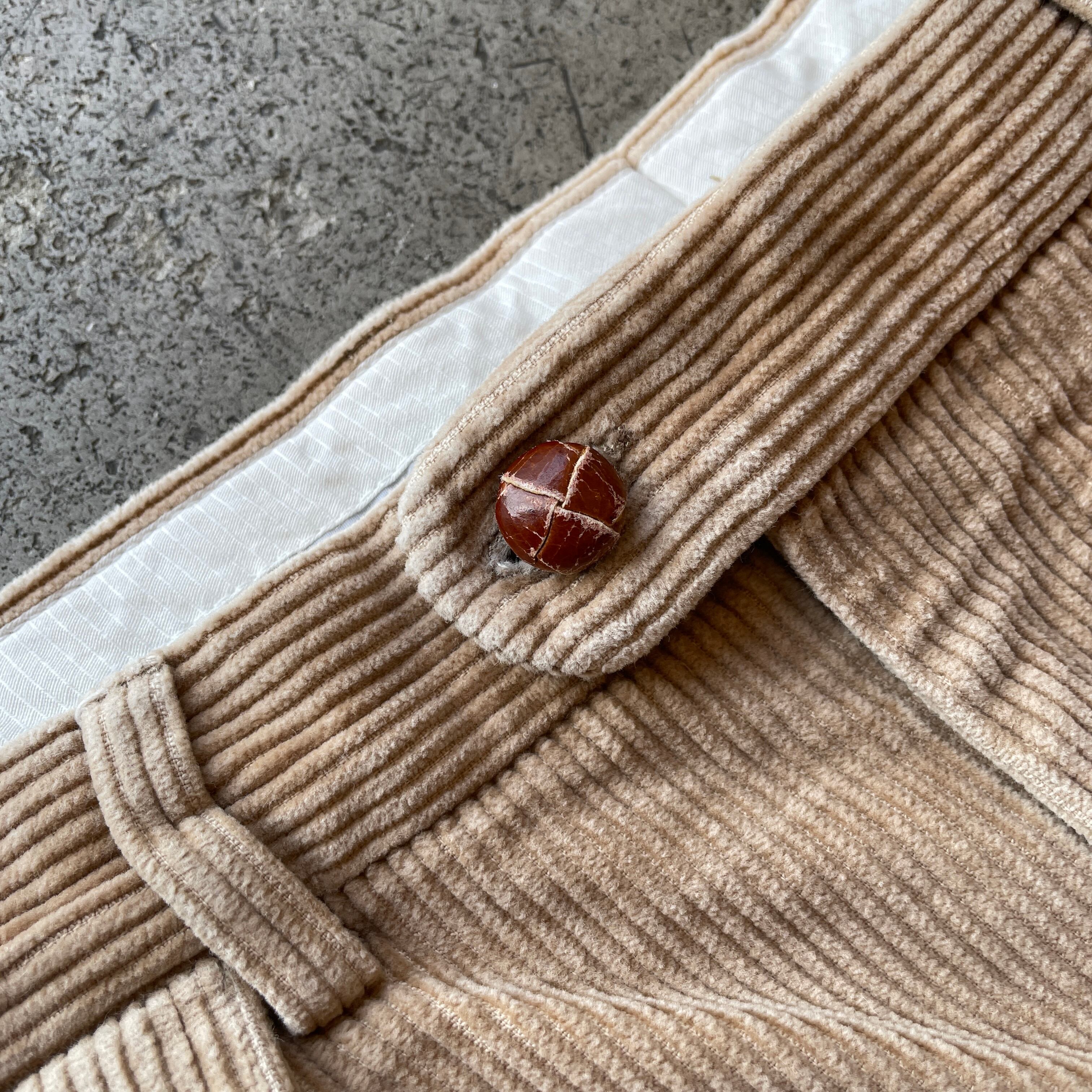 イヴ・サンローランの90年代コーデュロイパンツ。深めのタックが入り、クラシックで上品なシルエットが魅力です。やや太めのシルエットで秋冬のスタイリングに最適な一本。上質なコットン素材で履き心地も◎。