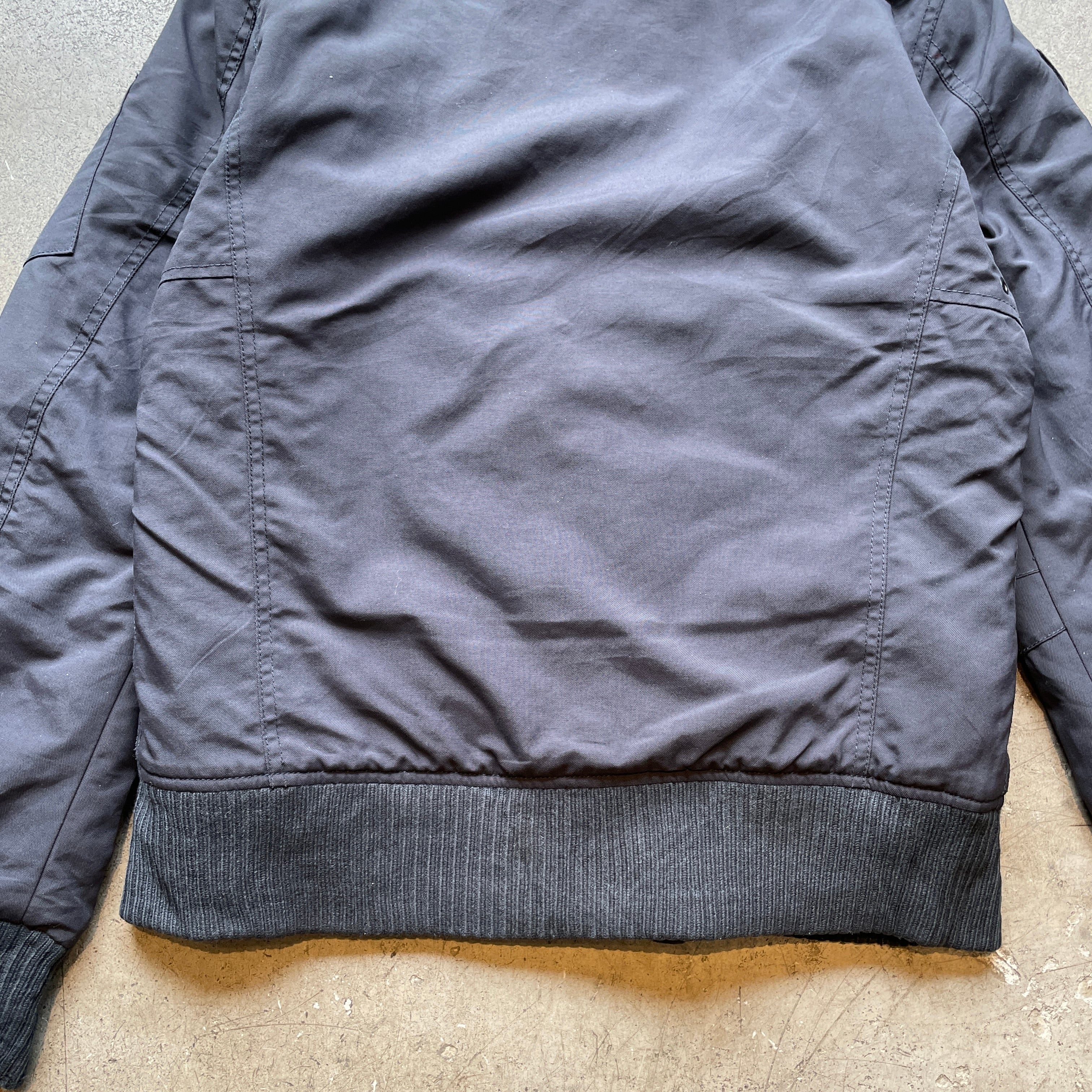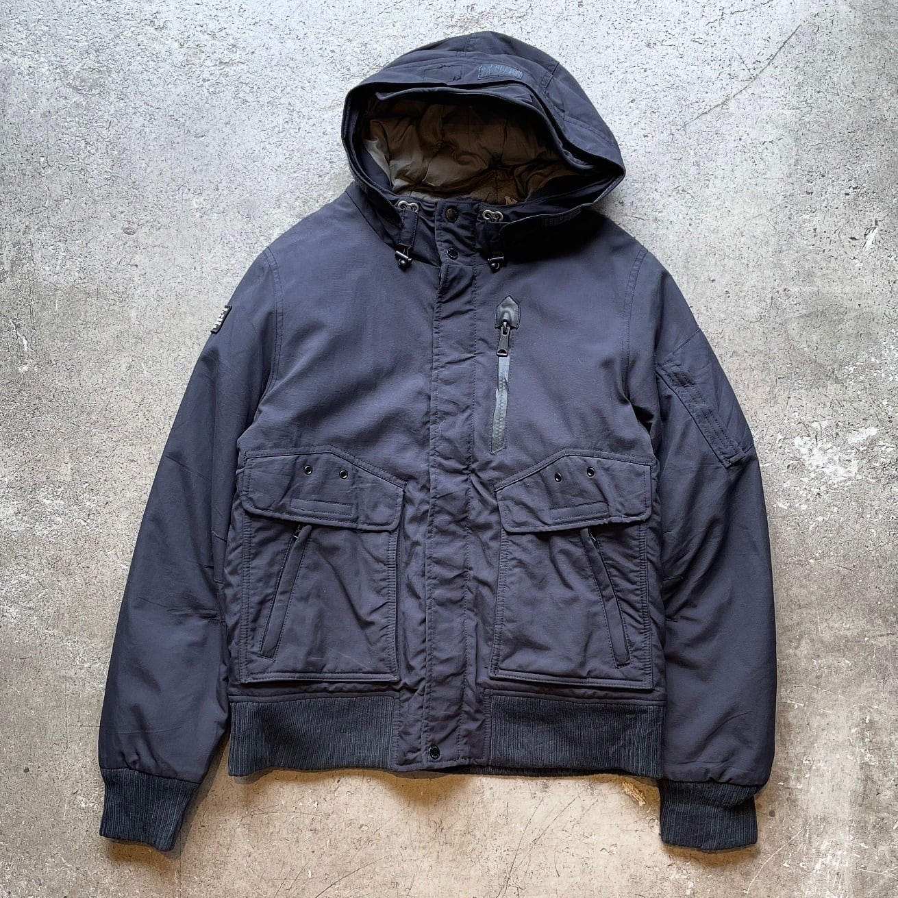 米軍フライトジャケットをベースにした無骨なデザインで厚みのあるナイロンシェルと高保温中綿により防寒性に優れた1着です。胸には止水風ジップ、腰にはフラップ×ハンドウォーマーの二重ポケットを装備し、収納力と機能性が両立。裾と袖のリブで風の侵入をしっかり防ぎます。