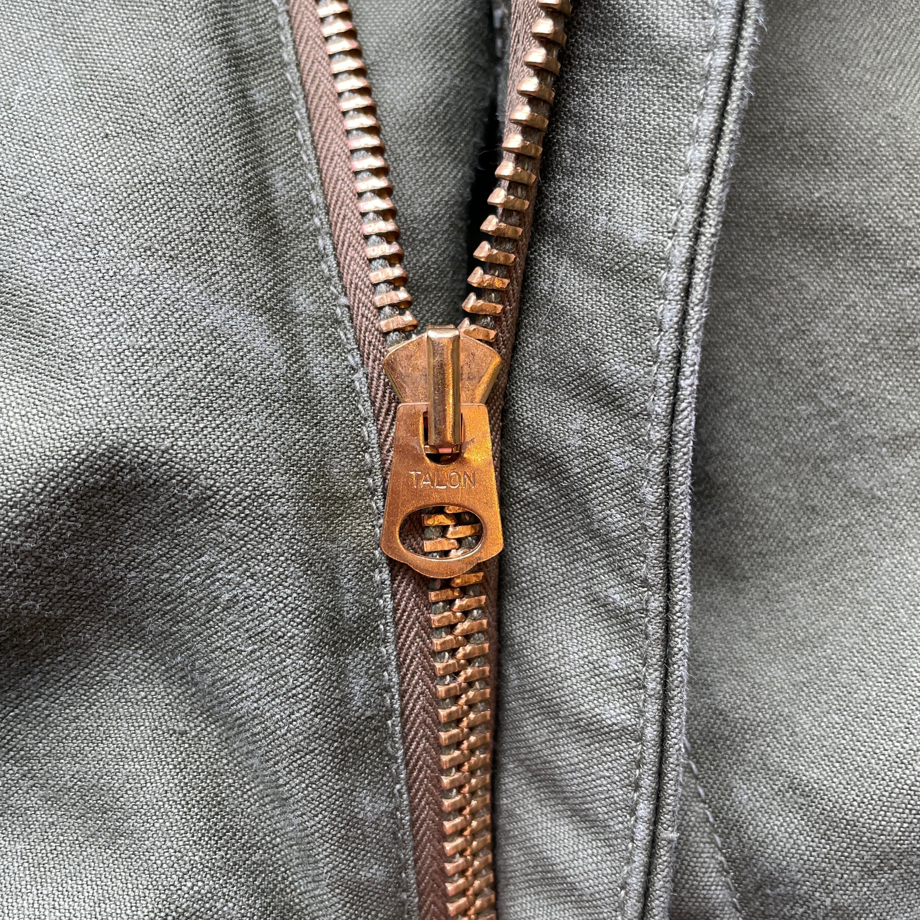 M-51特有の立体的なカーゴポケット、太さのある迫力シルエット、裾ドローコードなど、現行では再現しにくいディテールがしっかり残った一本。ミディアムロング表記は希少で着丈バランスが美しく、現代のスタイリングにも自然に落とし込めます。スウェットやレザージャケットとも相性が良く、オールドミリタリーの魅力を存分に楽しめる本格派のフィールドパンツです。