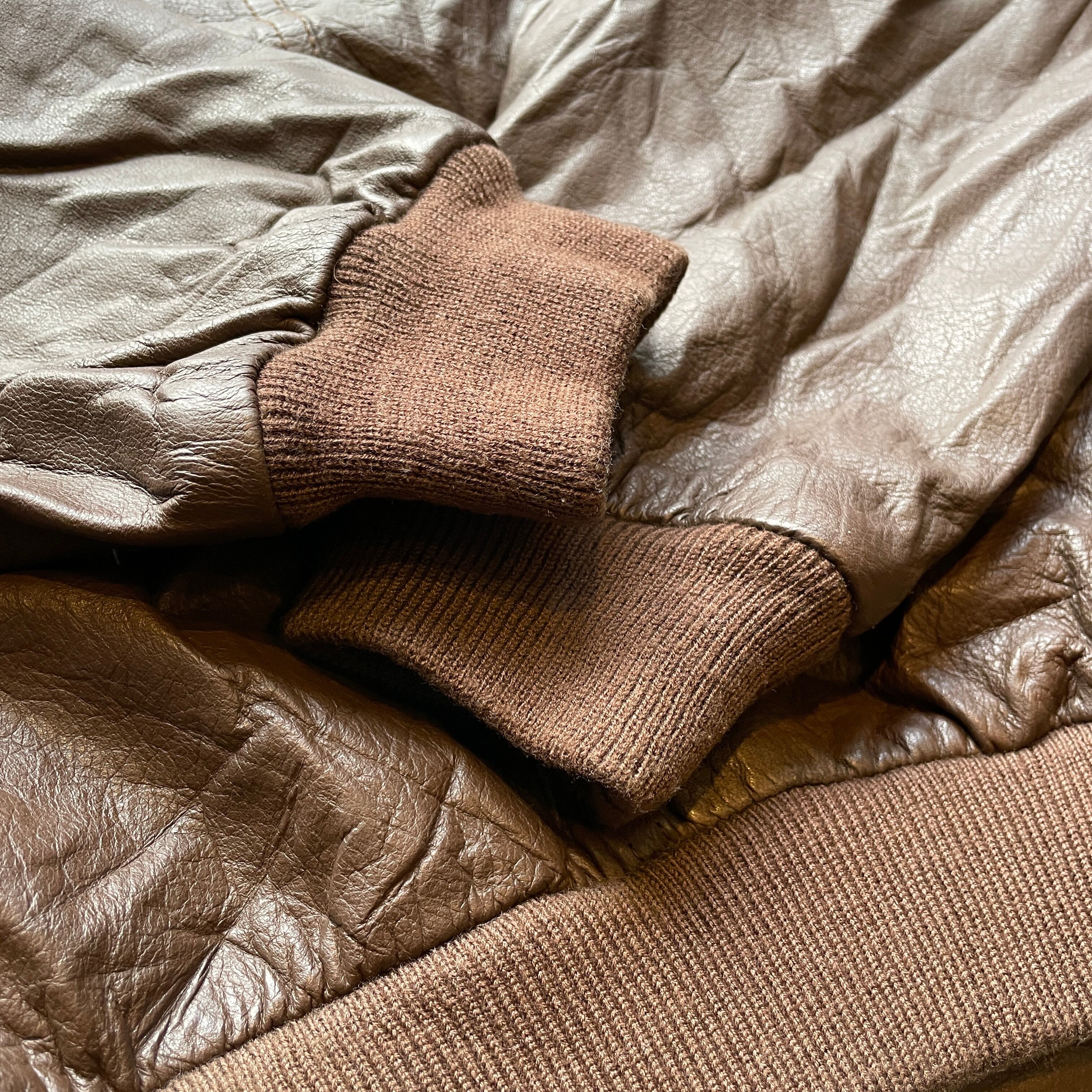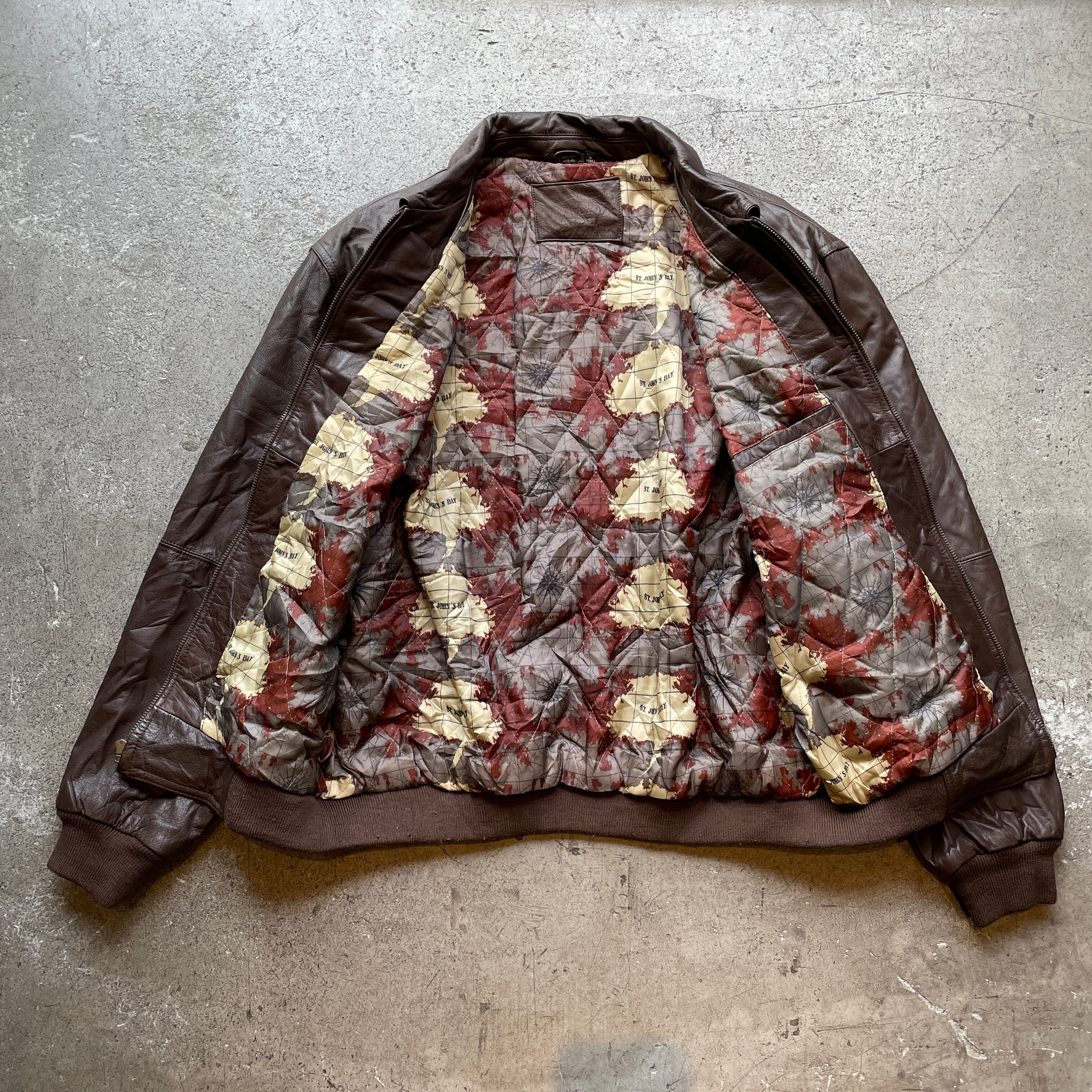 90年代らしい丸みのあるシルエットと深みのあるブラウンレザーが魅力の一着。中綿入りで冬場のアウターとしてもしっかり活躍し、日常使いに取り入れやすい軽快な着心地です。