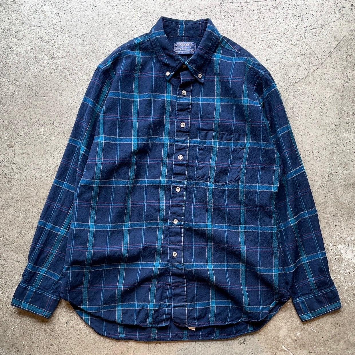 “SIR PENDLETON”の旧タグを備えた70sモデル。現行にはない重厚なウールの質感や深みのある色味が魅力でヴィンテージならではの存在感が際立つ一枚です。