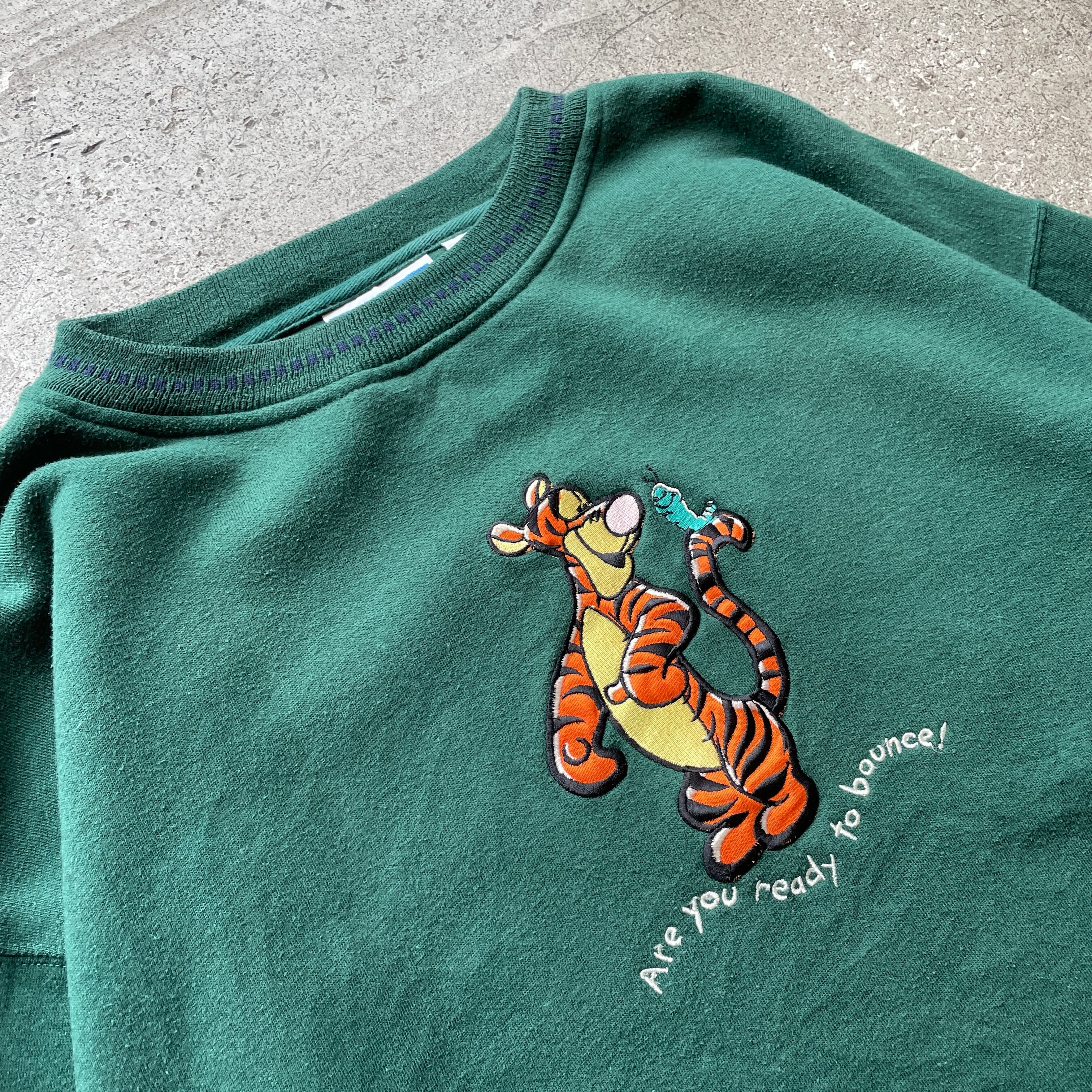 フロントにティガーを配したキャッチーな一枚。深いグリーンが大人っぽく、キャラクタースウェットながら落ち着いた印象で着られます。リラックス感のあるXLサイズでデイリーに使いやすいアイテムです。