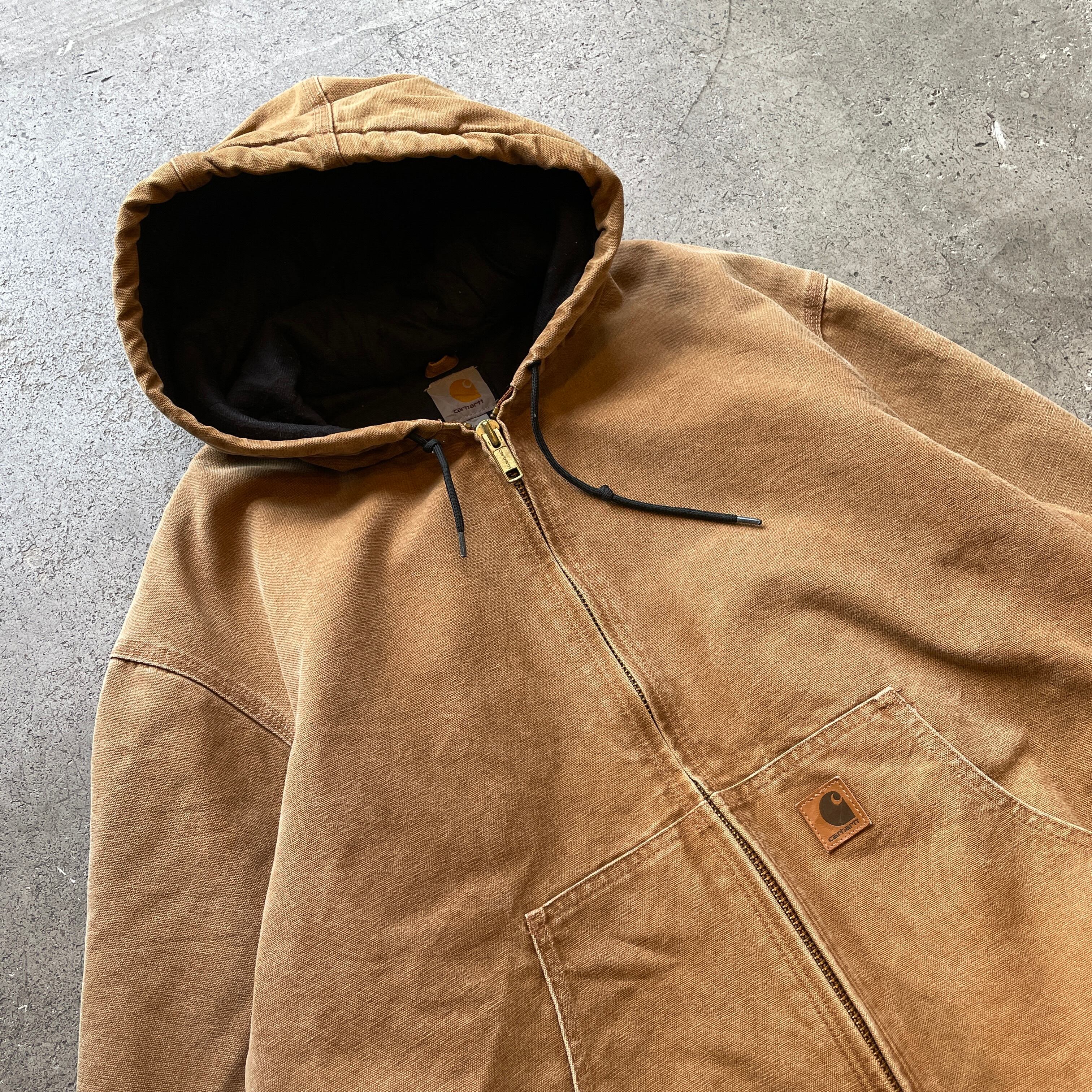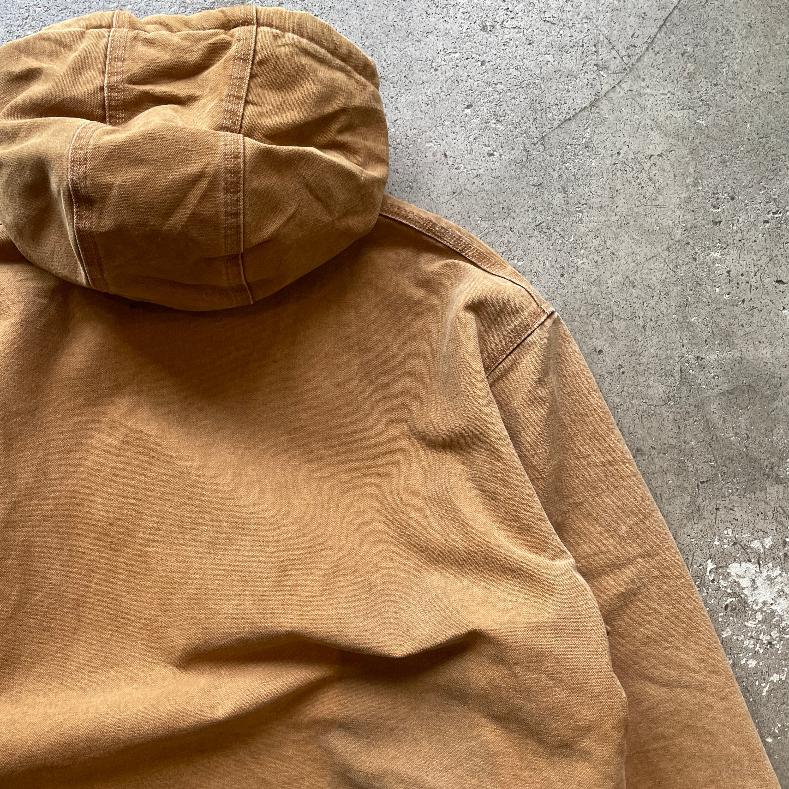 Carhartt定番のアクティブジャケット。ダック地特有の無骨な表情と、着込まれたことによるフェード感が魅力の一着です。裏地はキルティング仕様で防寒性も確保。ストリートからワークスタイルまで幅広く対応します。