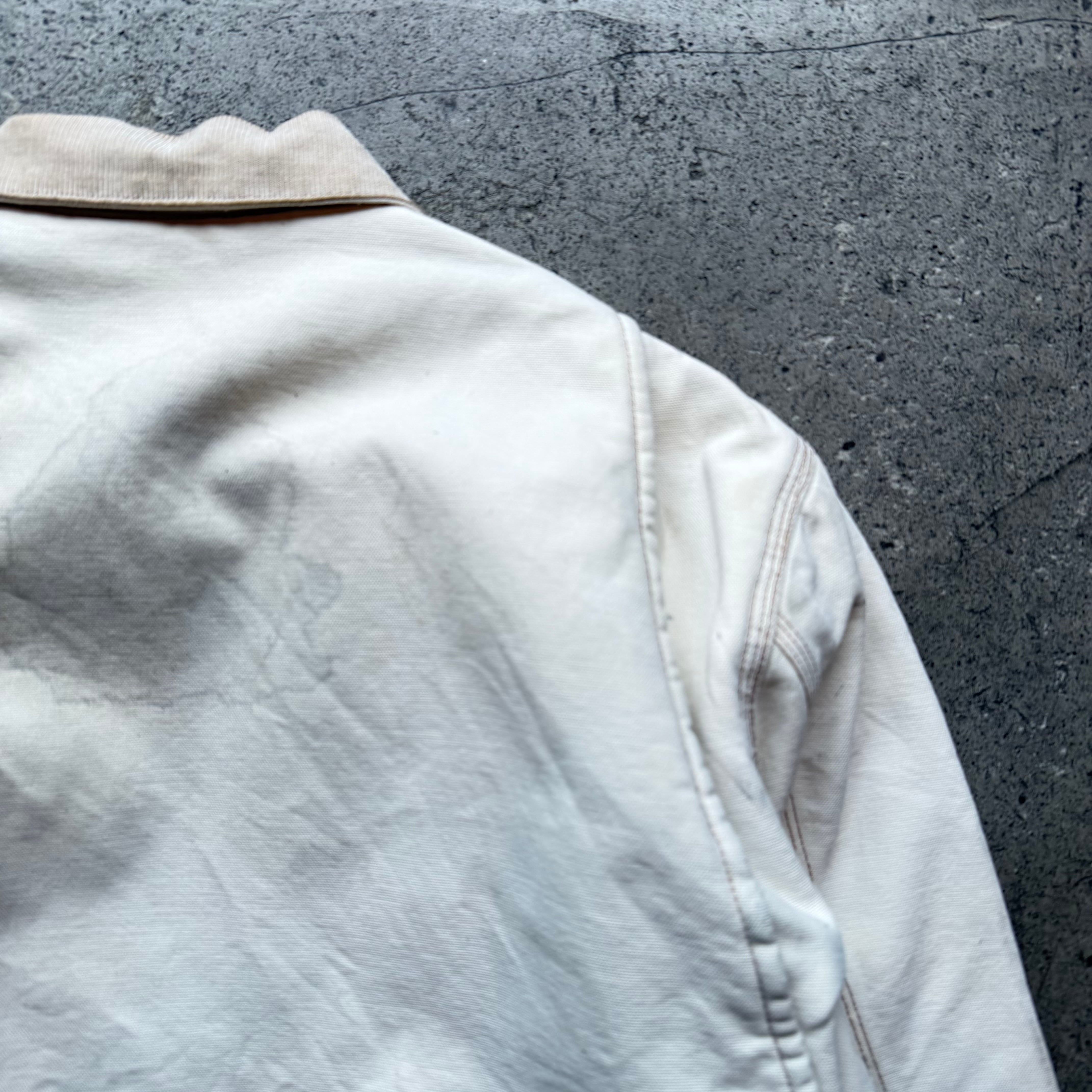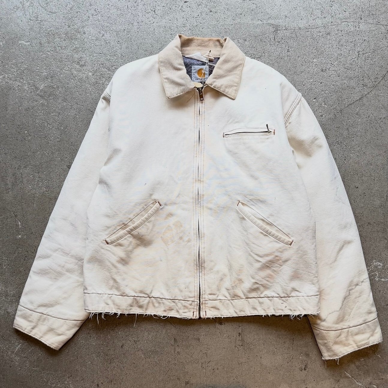 Carharttを代表する定番モデル「デトロイトジャケット」。短丈・ボックスシルエットにフロントジップとシンプルなポケット配置が特徴の一着です。