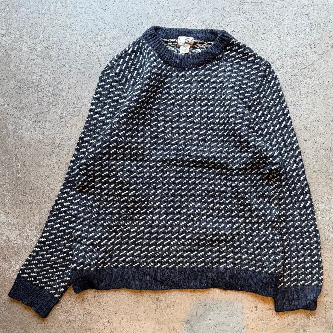 L.L.Beanの定番として知られるバーズアイ柄ウールニット。ノルウェー製・ウール100%の肉厚な編み地で防寒性と耐久性を兼ね備えた一枚。柄の主張は控えめで、スラックスからデニムまで幅広く合わせやすい万能モデル。