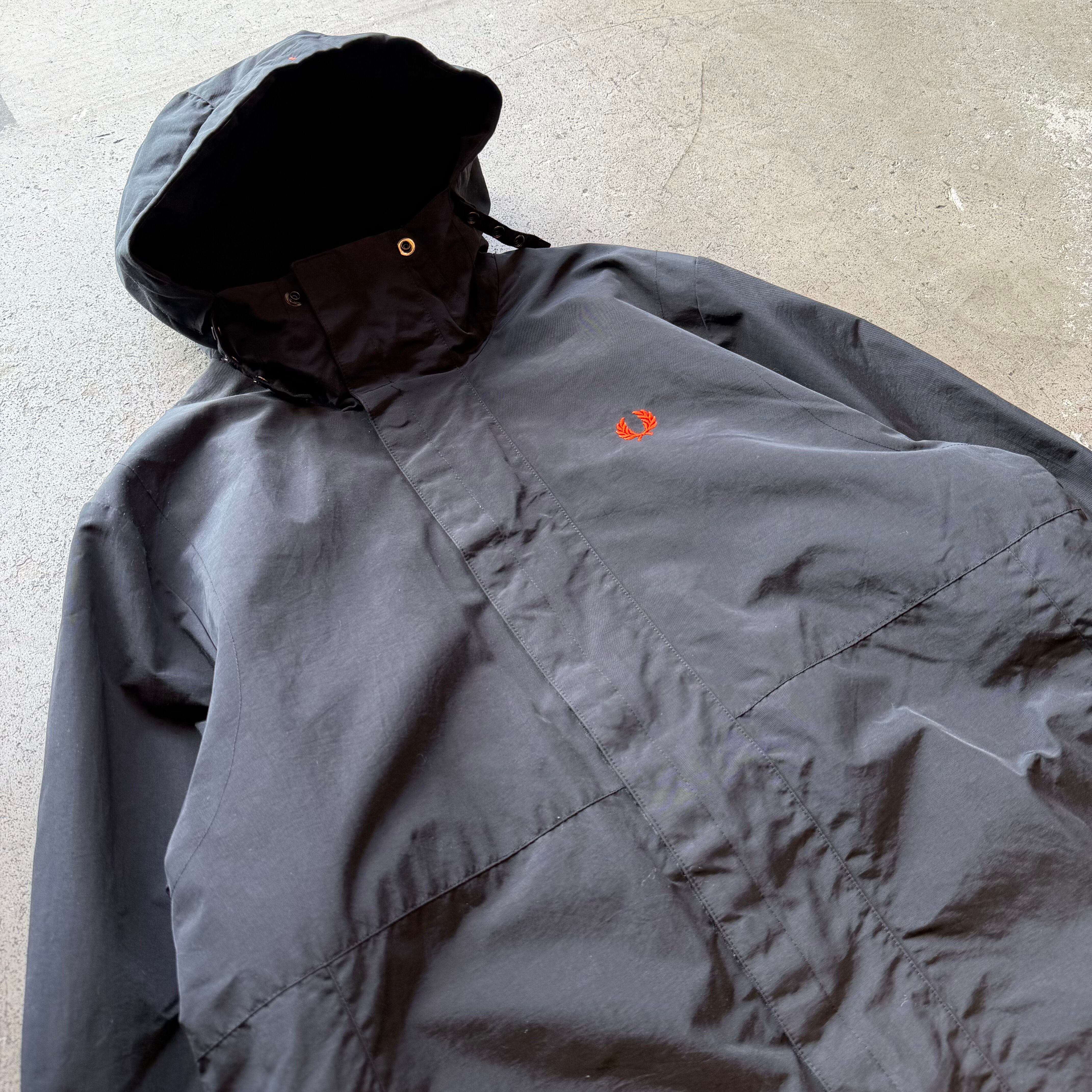 FRED PERRYのフリースライナーフーデッドジャケット。表地はナイロン素材、内側は総フリース仕様で防寒性をしっかり確保した実用的な一着です。