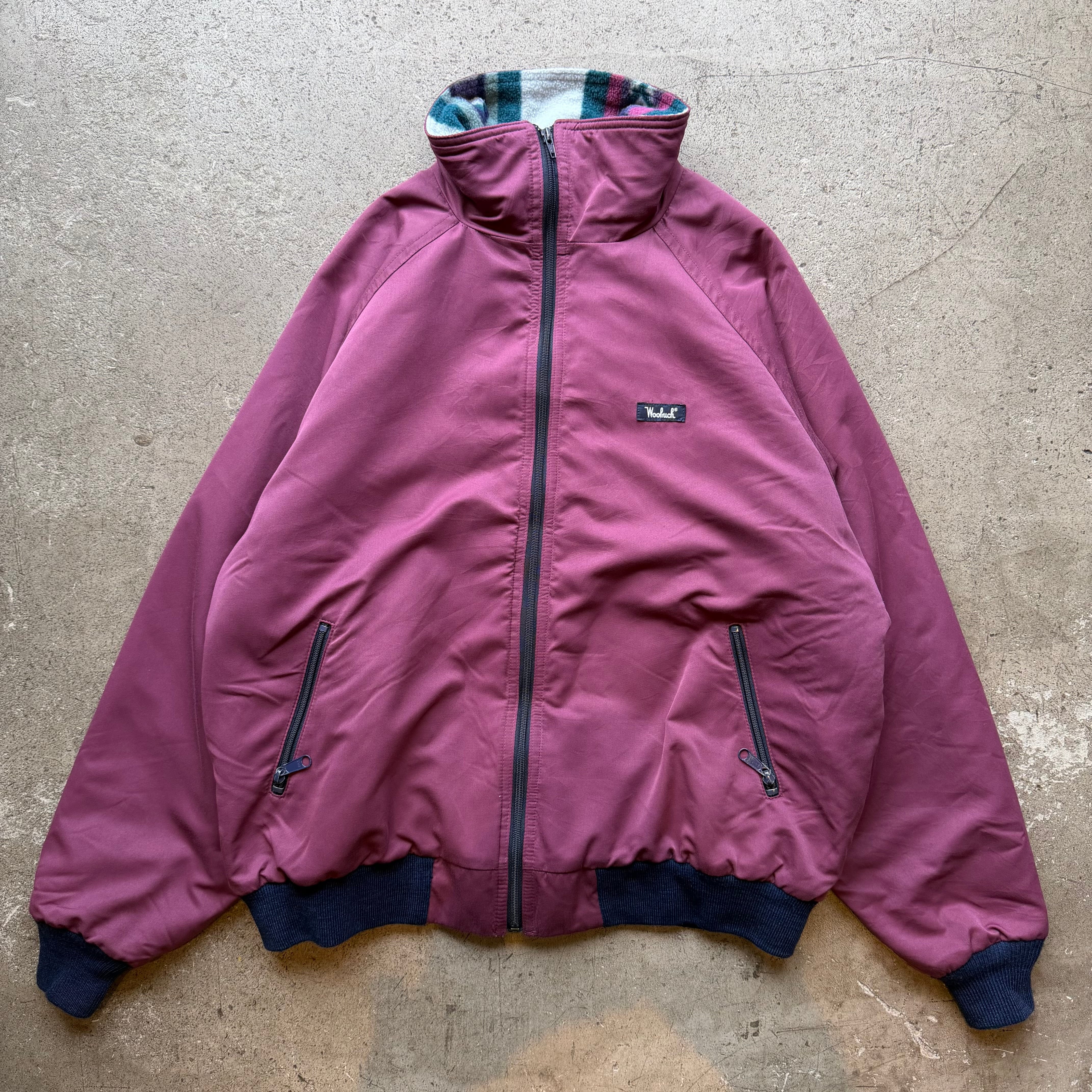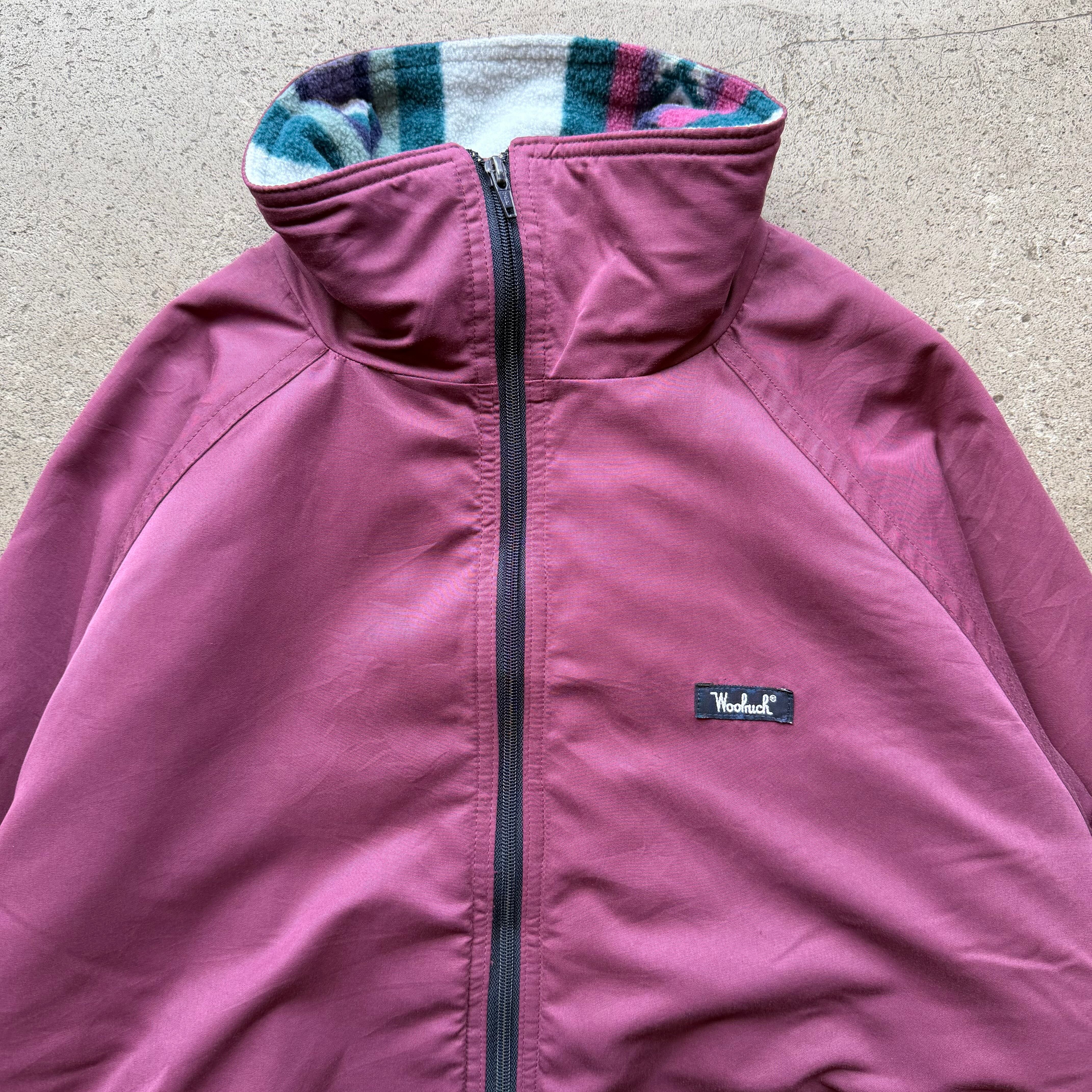 80年代Woolrichらしいカラーリングが際立つナイロンジャケット。落ち着いたバーガンディのシェルに内側は存在感のあるマルチカラーフリースを組み合わせたデザイン性の高い一着です。