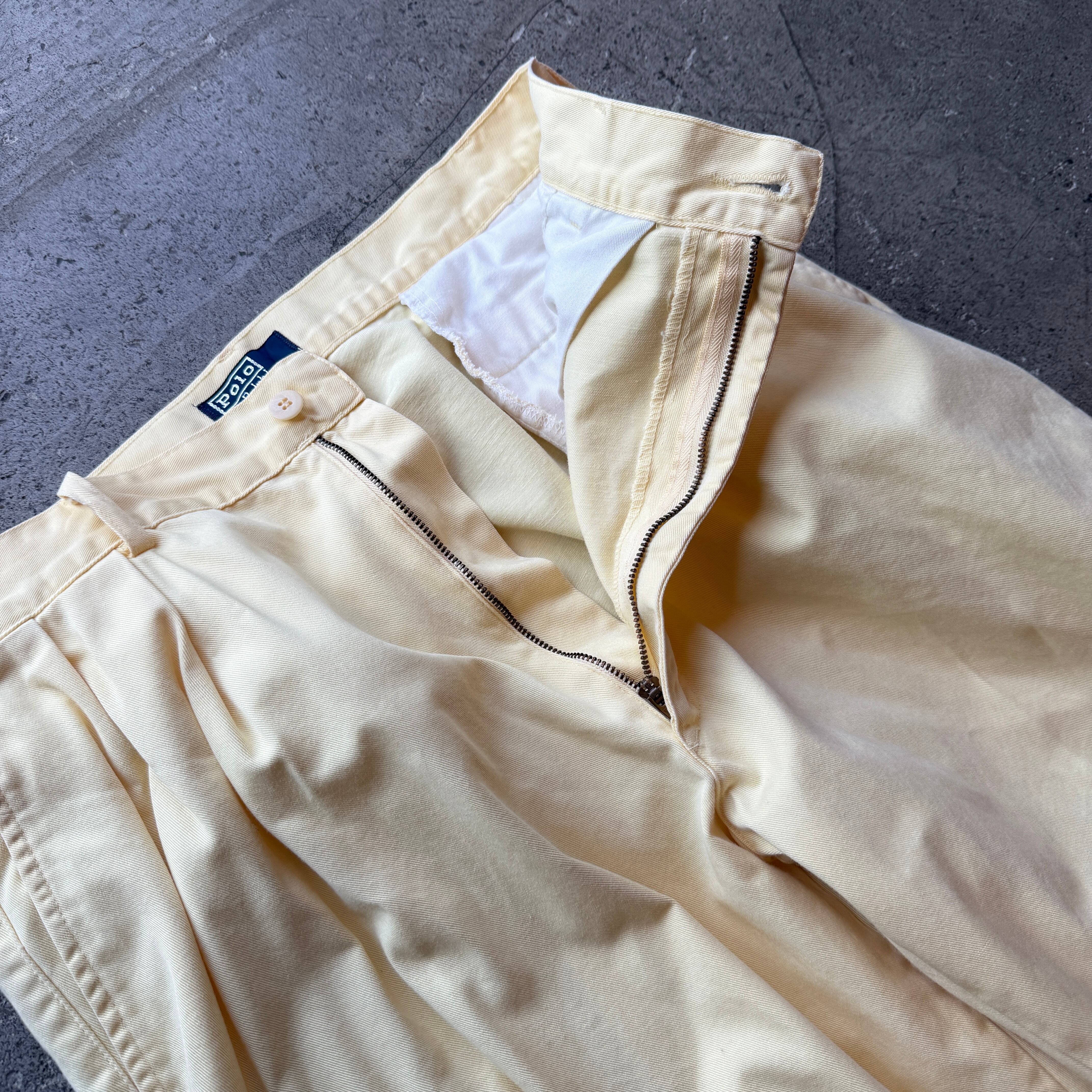 90年代POLO Ralph LaurenのUSA製チノパンツ。近年は急激に数が減っているアメリカ製ポロチノの中でも、コンディション・サイズバランスともに条件の揃った一本です。