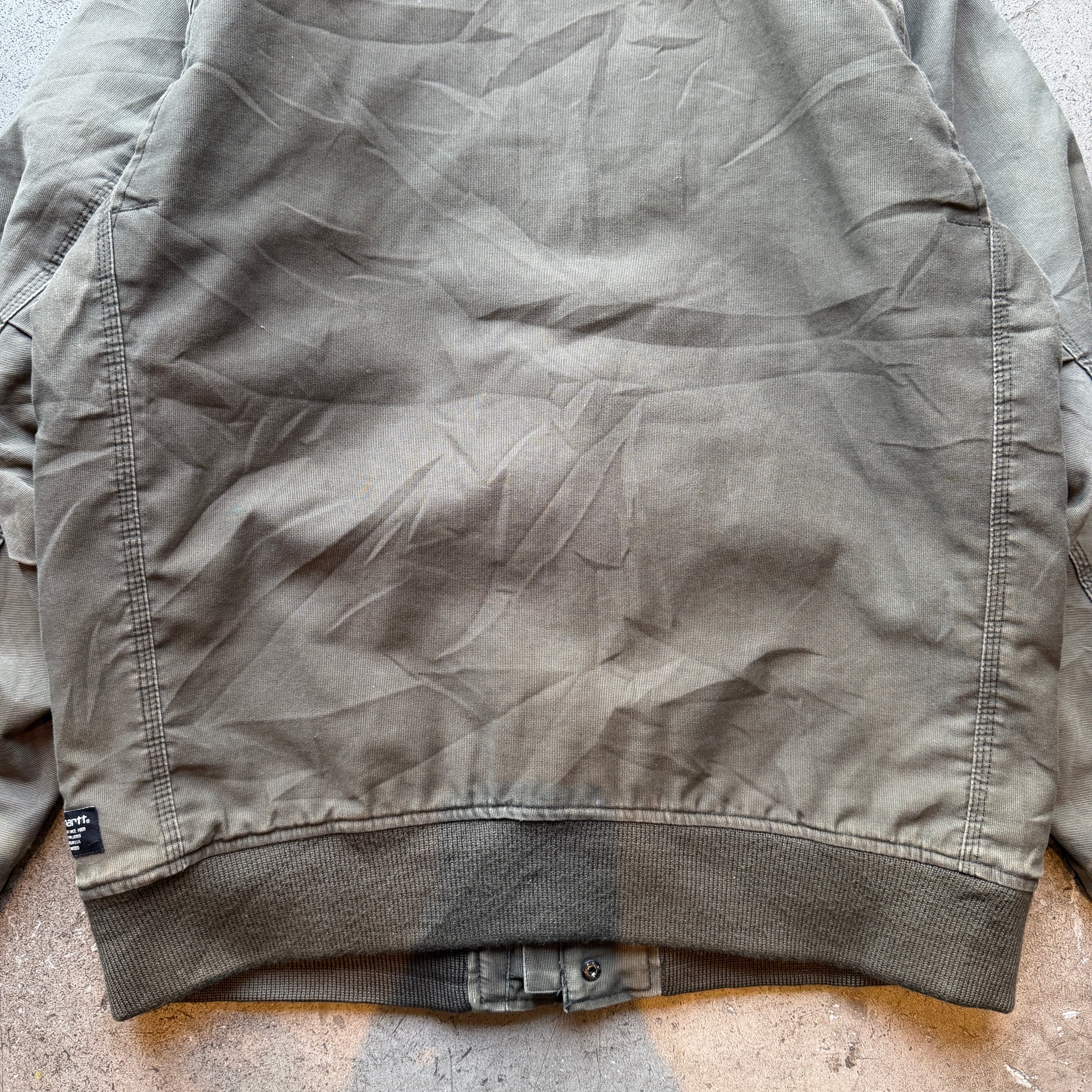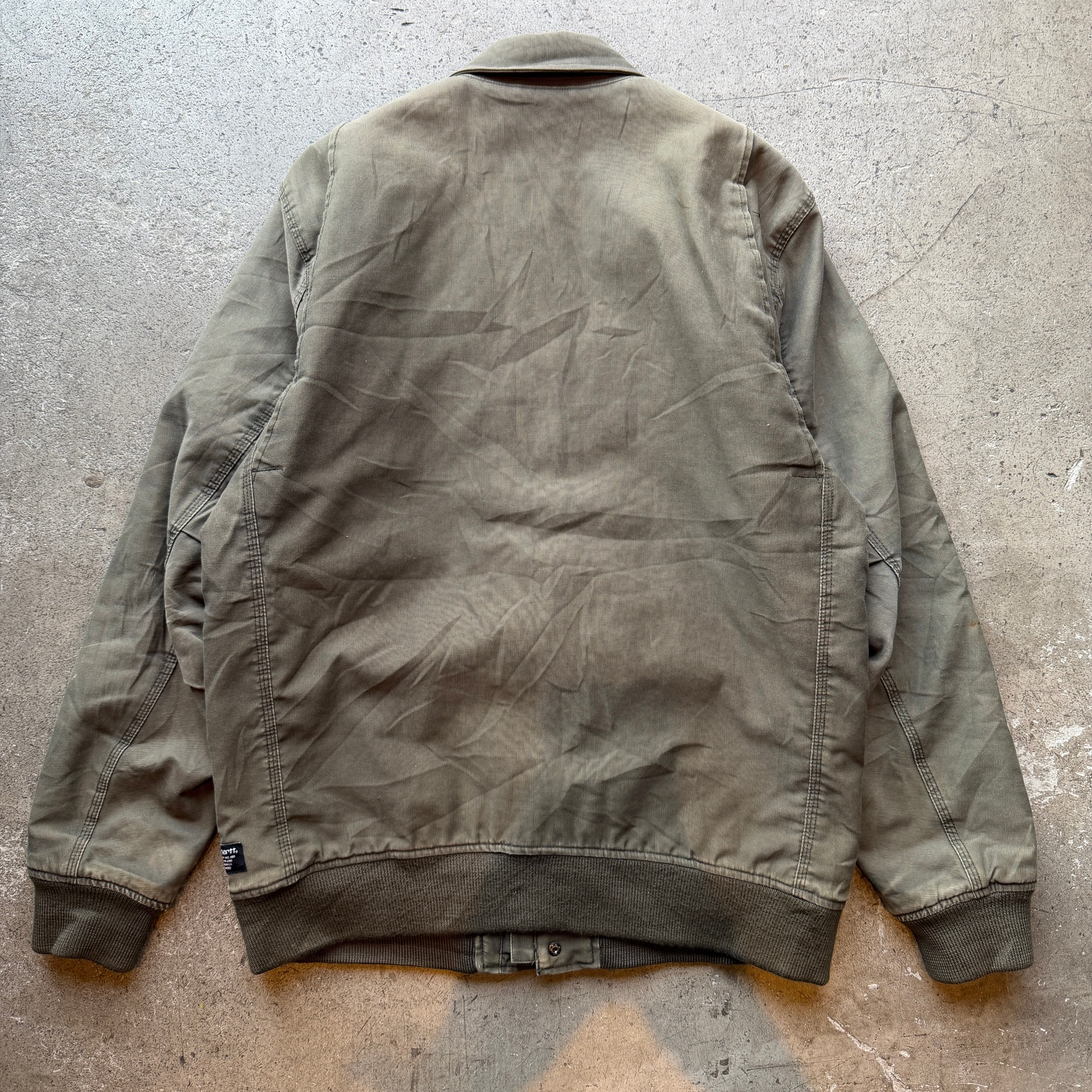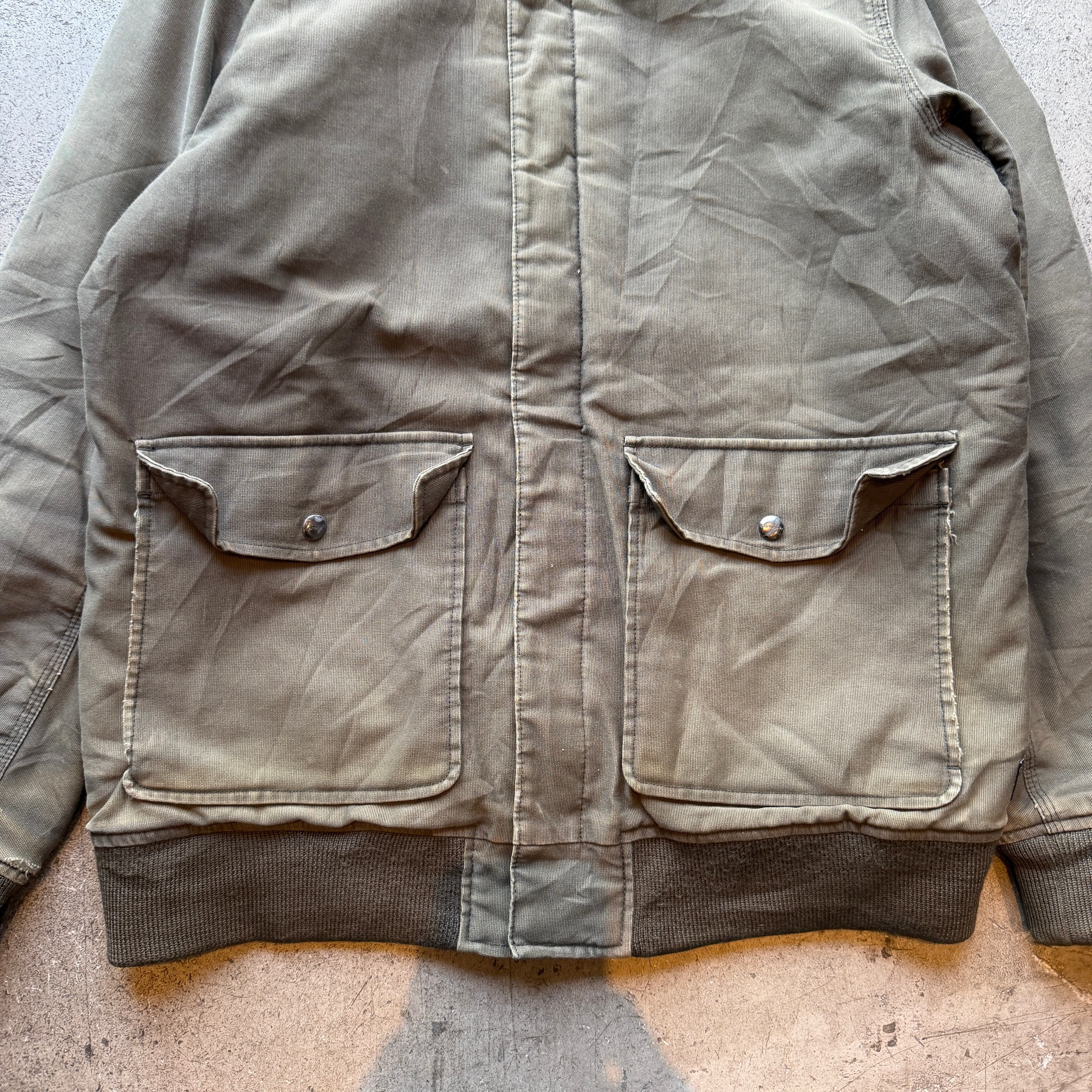 程よくフェードしたダック地と丸みのあるシルエットがワークウェア特有の重厚感を柔らかく昇華しています。ライナー付きで実用性も高く、スタイリング次第でストリートにもクラシックにも振れる一着です。