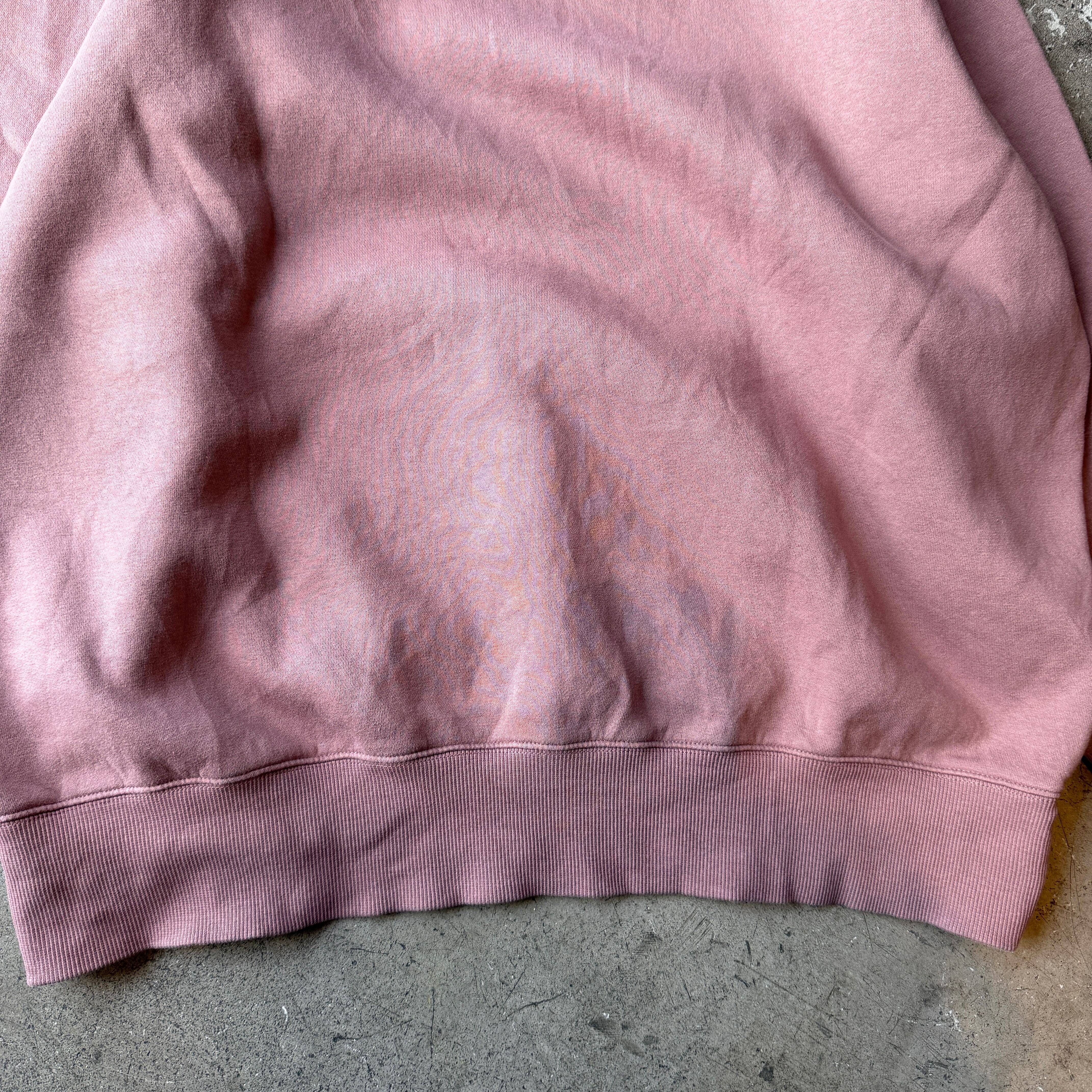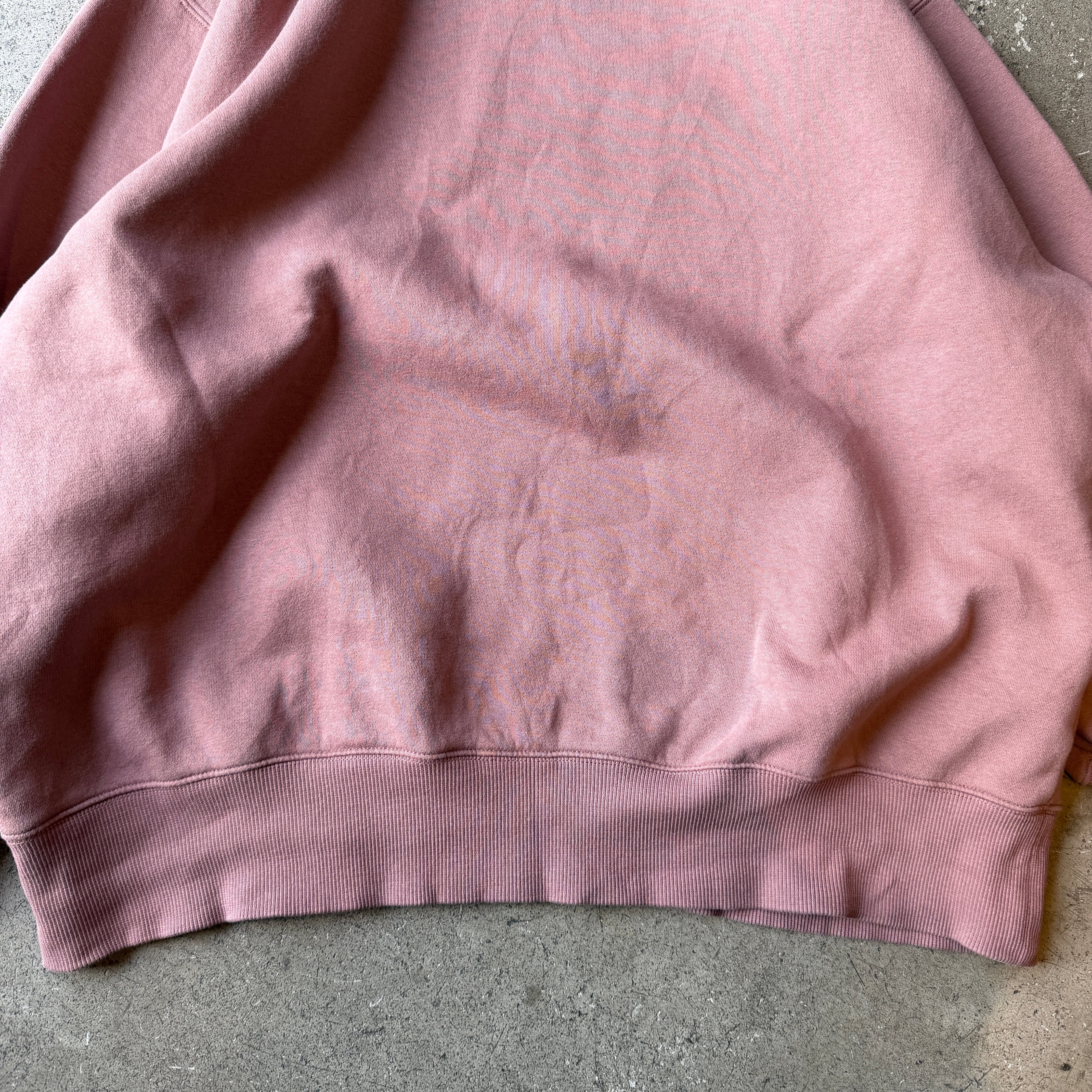 胸元中央に配されたNIKEのセンタースウォッシュがミニマルで洗練された印象を演出するクルーネックスウェット。フェード感のあるスモーキーピンクは無機質になりがちなスポーツアイテムに柔らかさと色気をプラス。