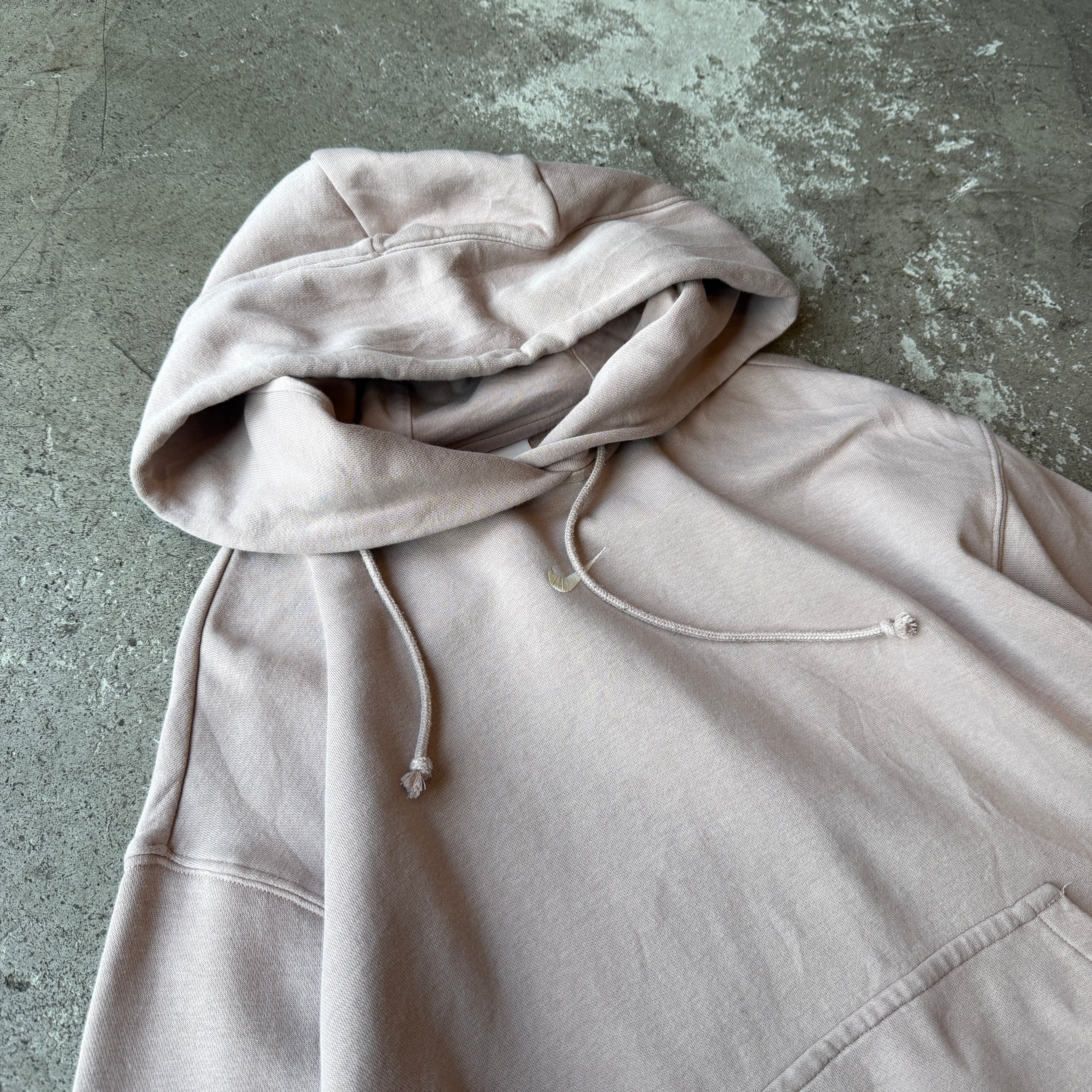 スポーツウェアの枠を超え、色で魅せるNIKEのプルオーバーパーカー。柔らかくくすんだダスティピンクは甘さを抑えつつスタイリングに抜けを与える絶妙なトーンです。