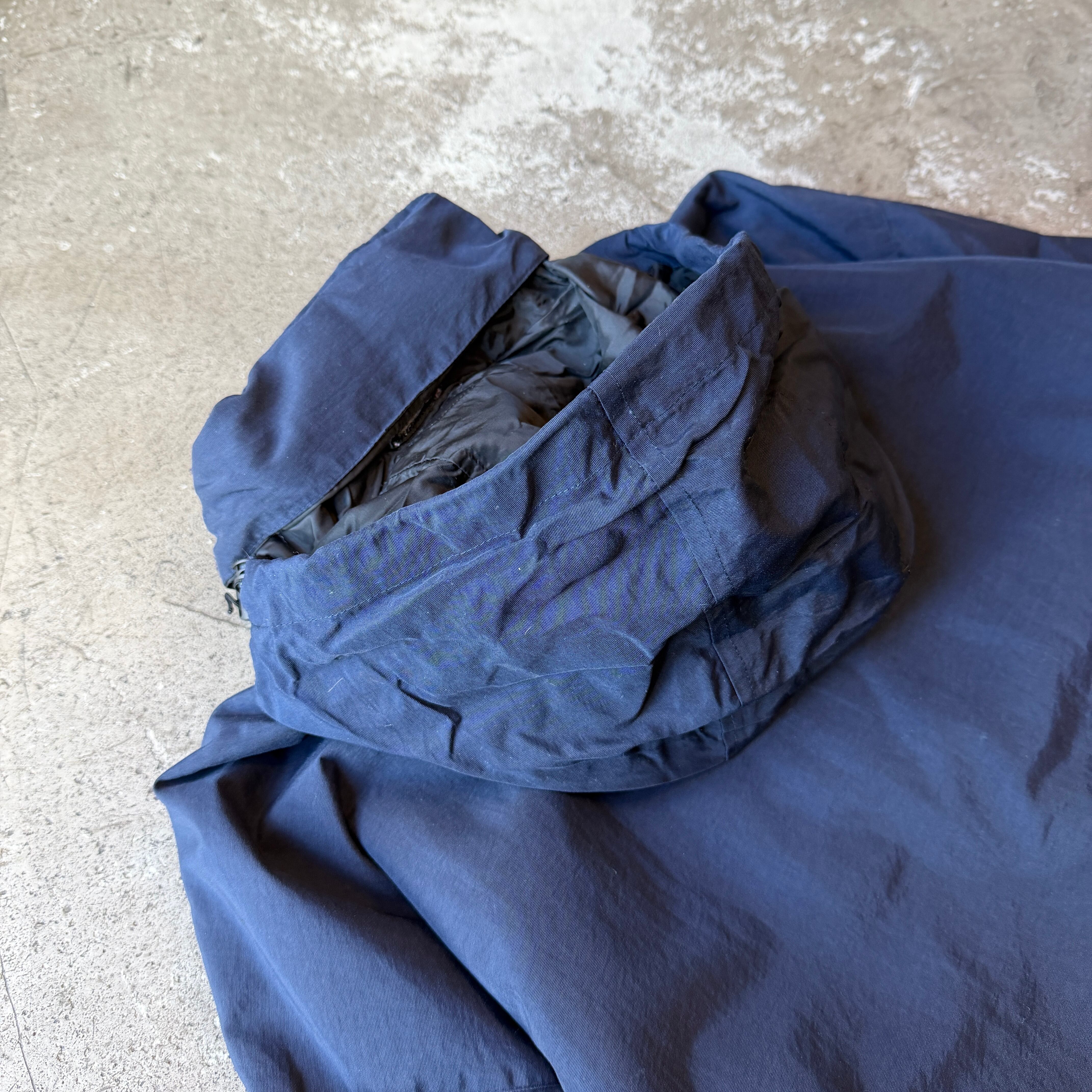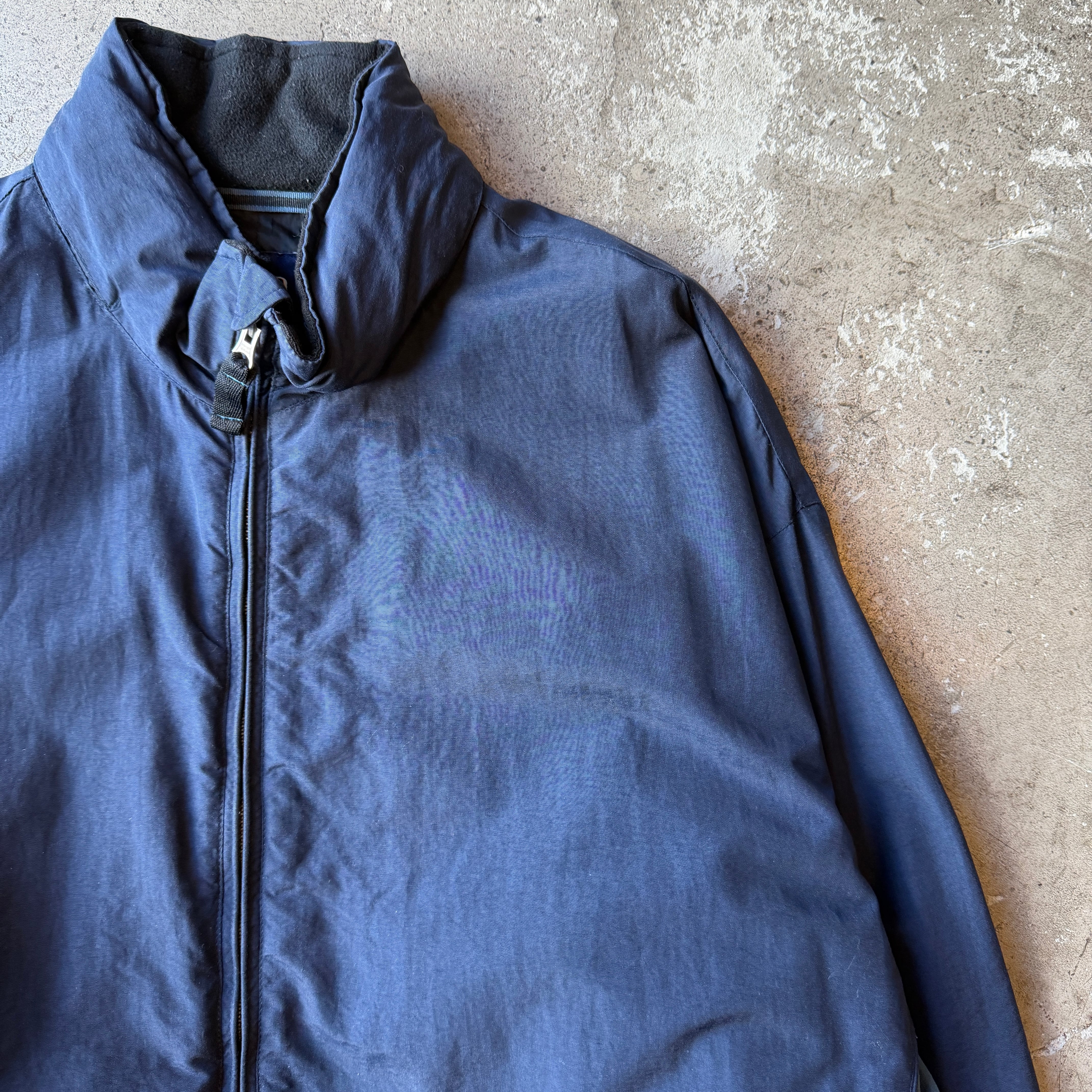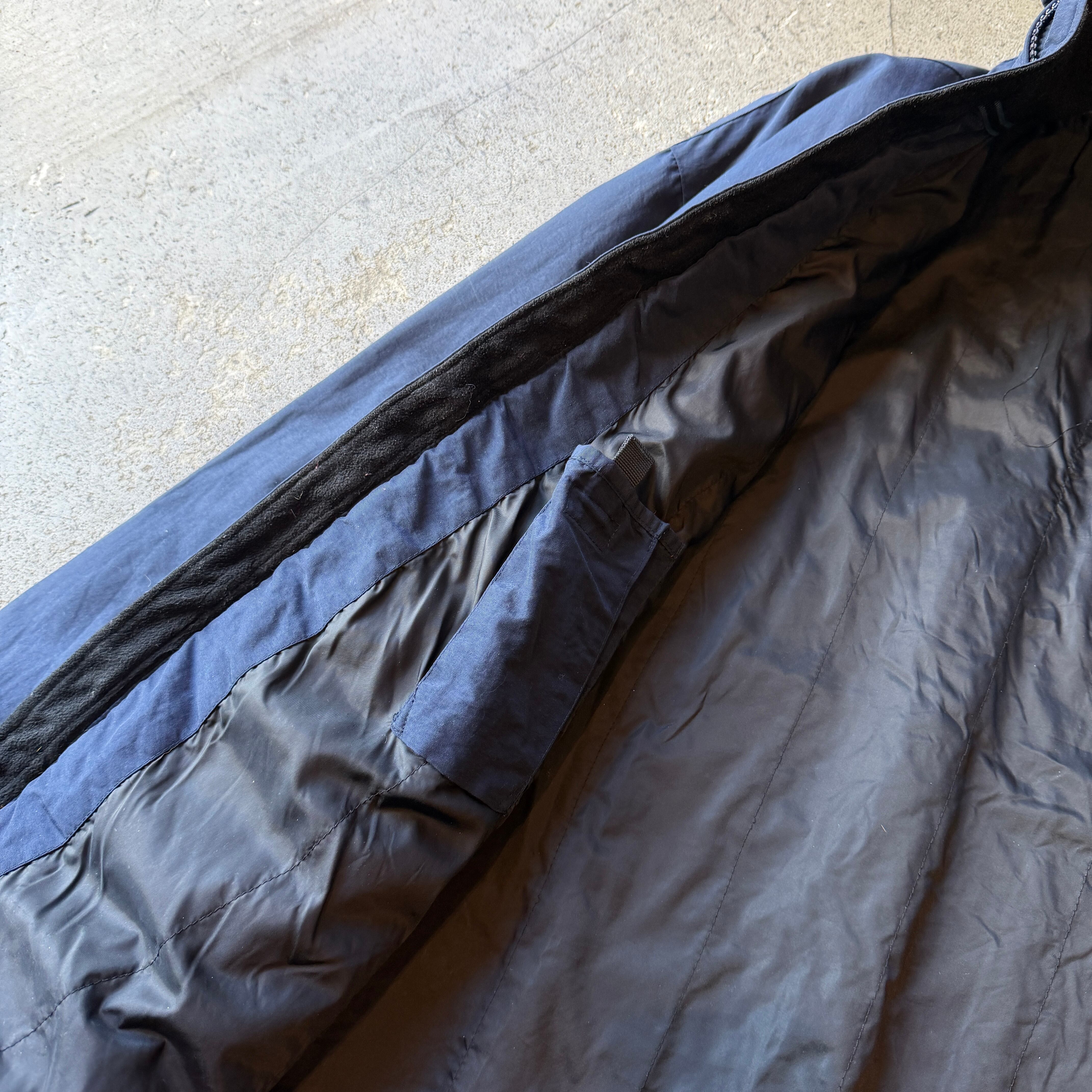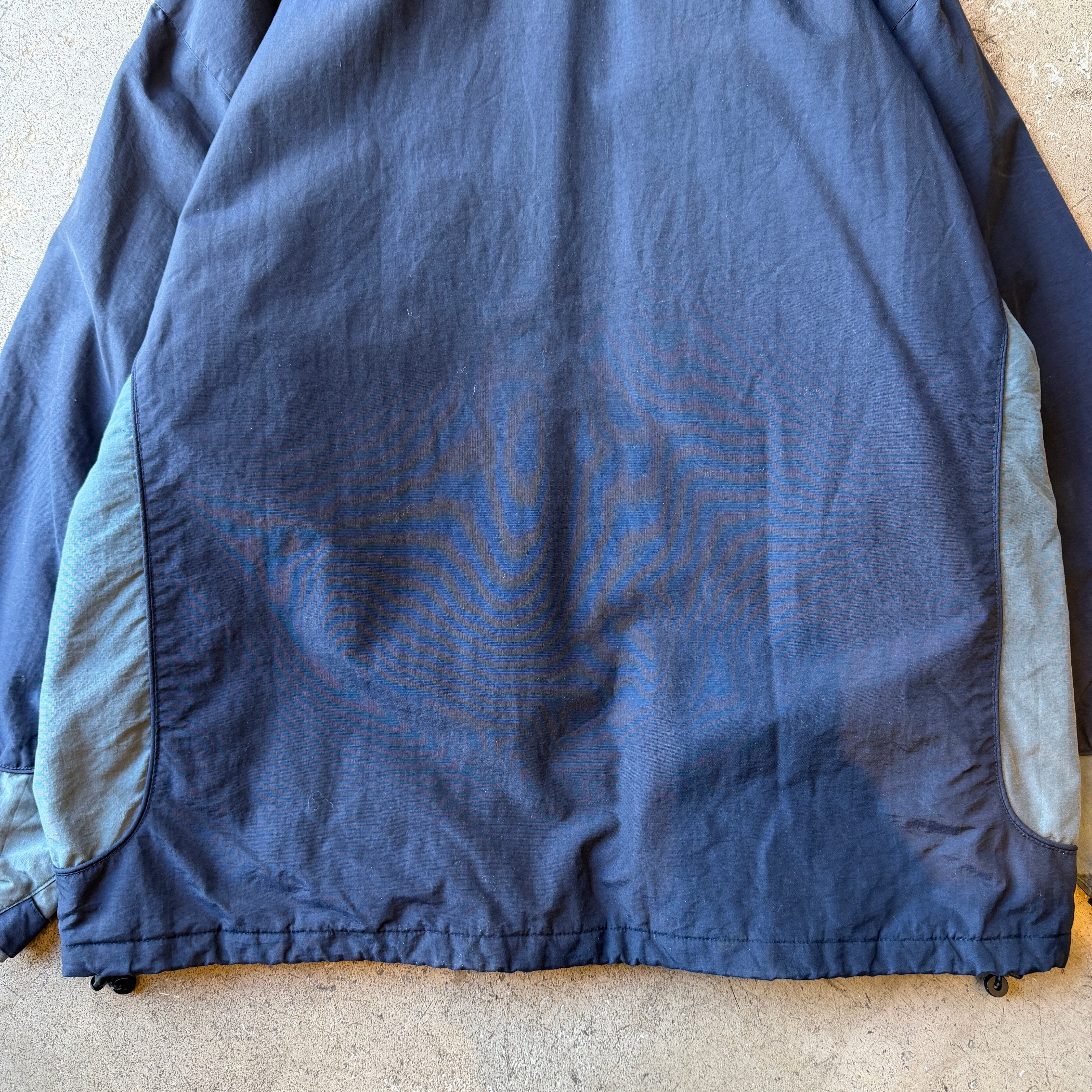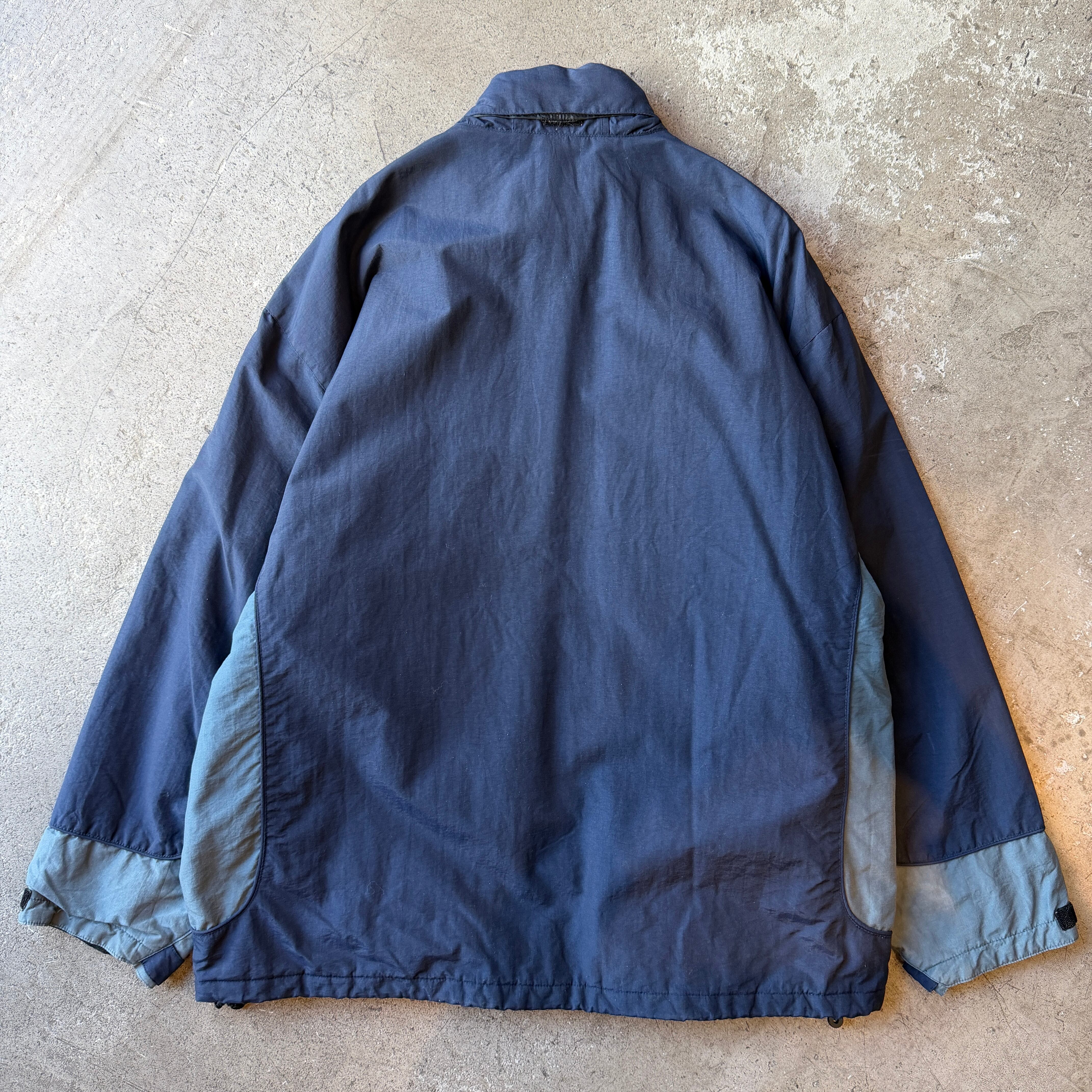 00年代GAPらしい、過剰な主張を排した機能美が際立つ中綿ナイロンジャケット。落ち着いたネイビーボディに切り替え配色を効かせることで、シンプルながらも奥行きのある表情に仕上がっています。