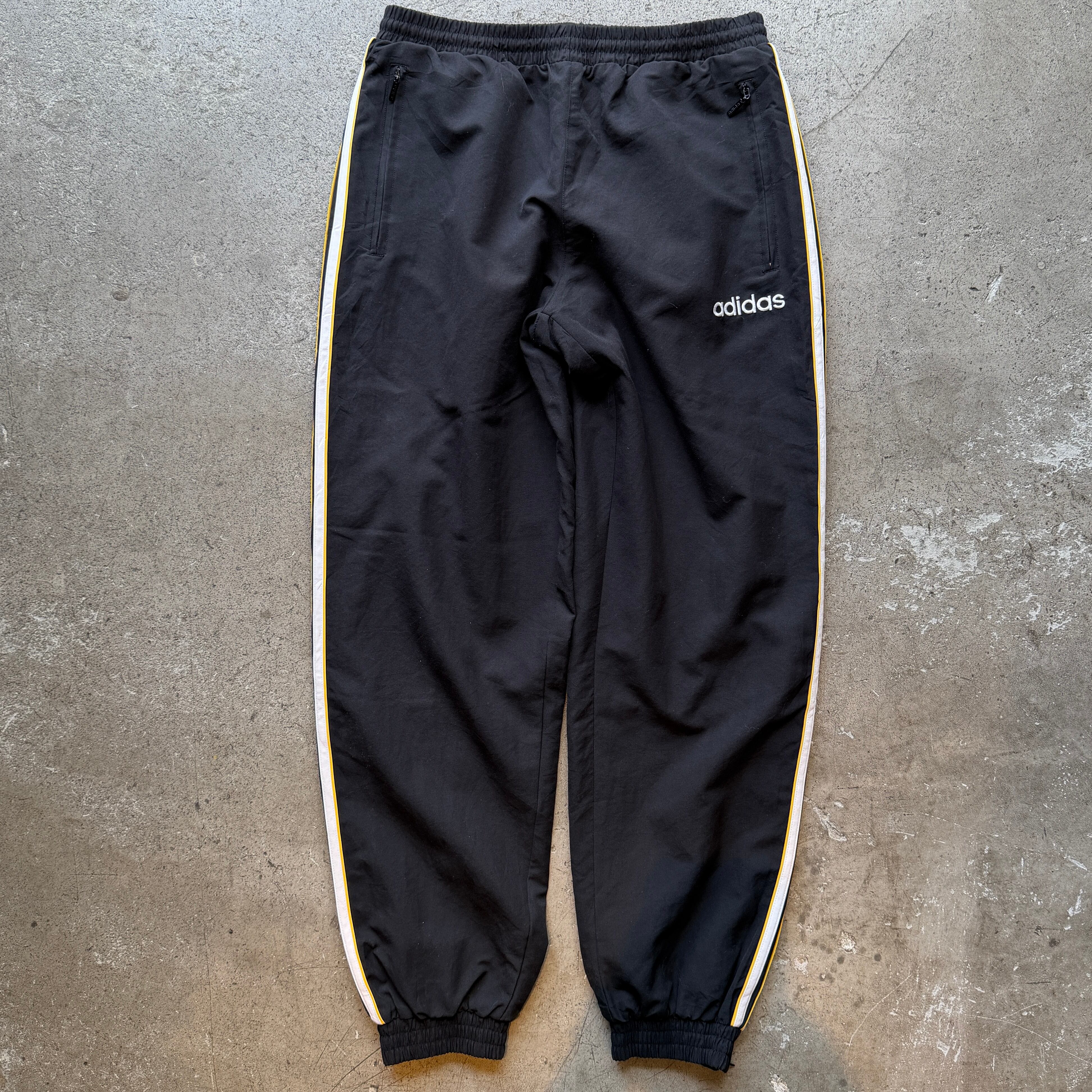 90年代adidasらしい洗練された配色とシルエットが魅力のナイロンパンツ。ブラックを基調にサイドラインへホワイトとイエローを効かせたデザインはシンプルながら確実に“今っぽさ”を演出。