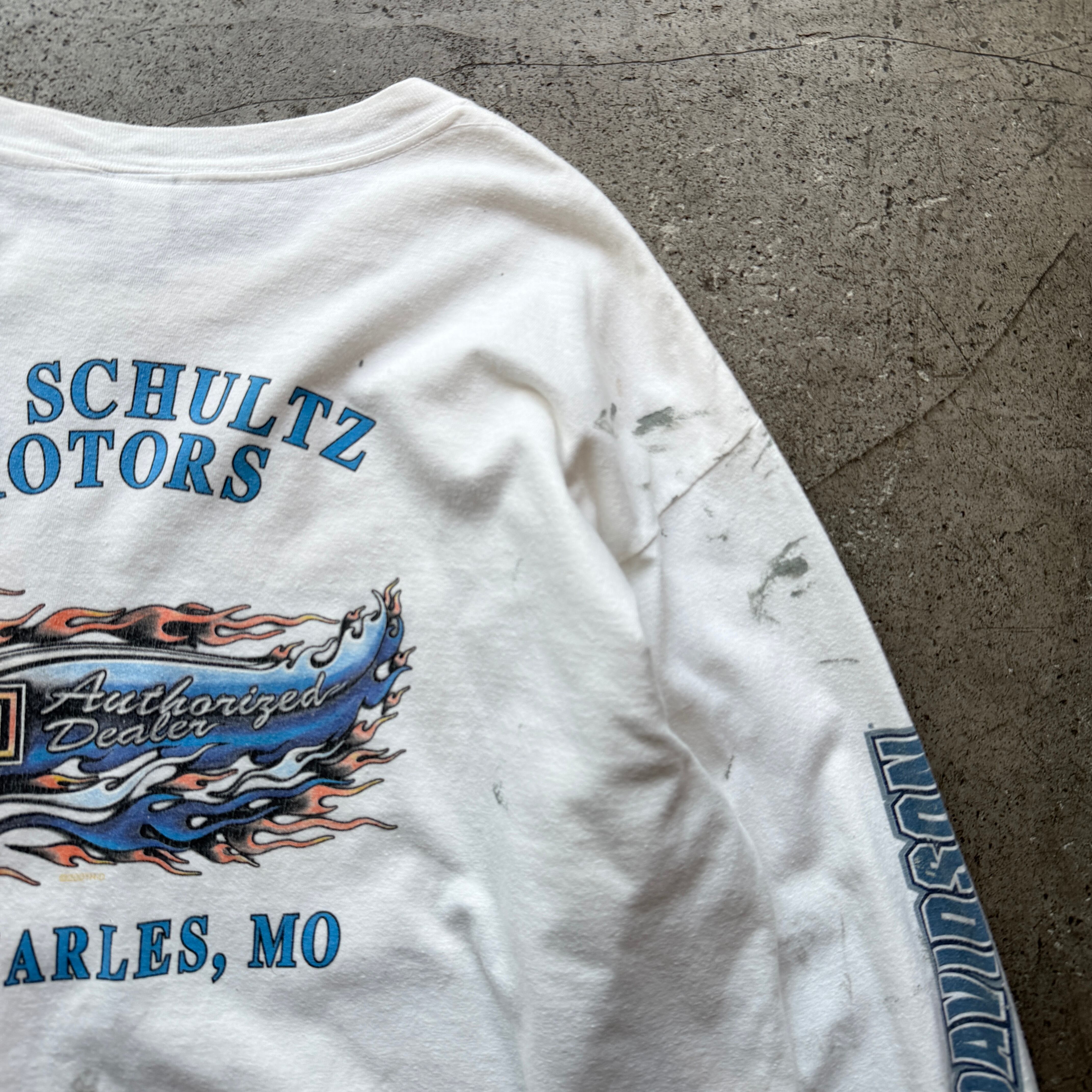 ミズーリ州「BOB SCHULTZ MOTORS」のディーラーロケーションを背面に配した、HARLEY-DAVIDSONのロングスリーブTシャツ。