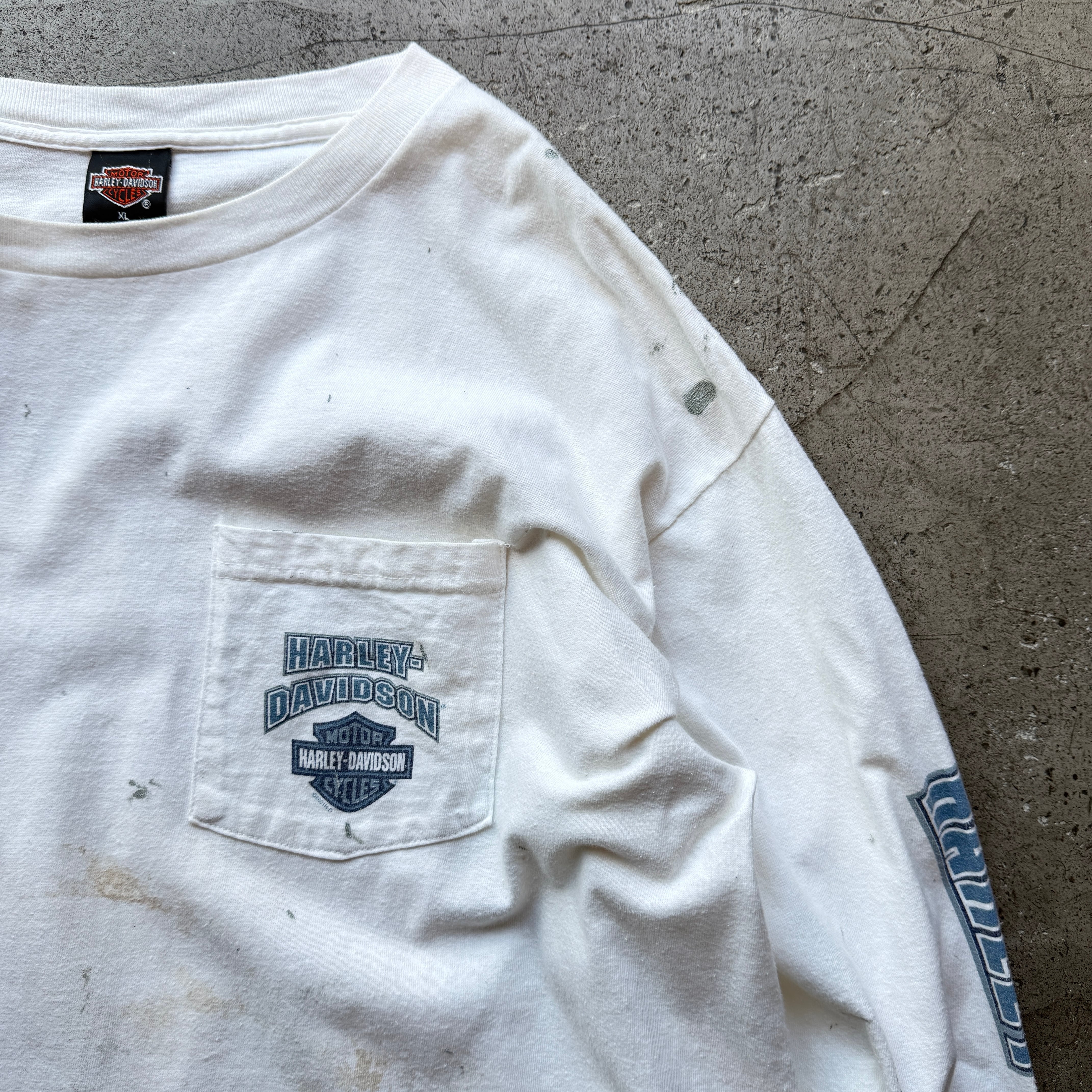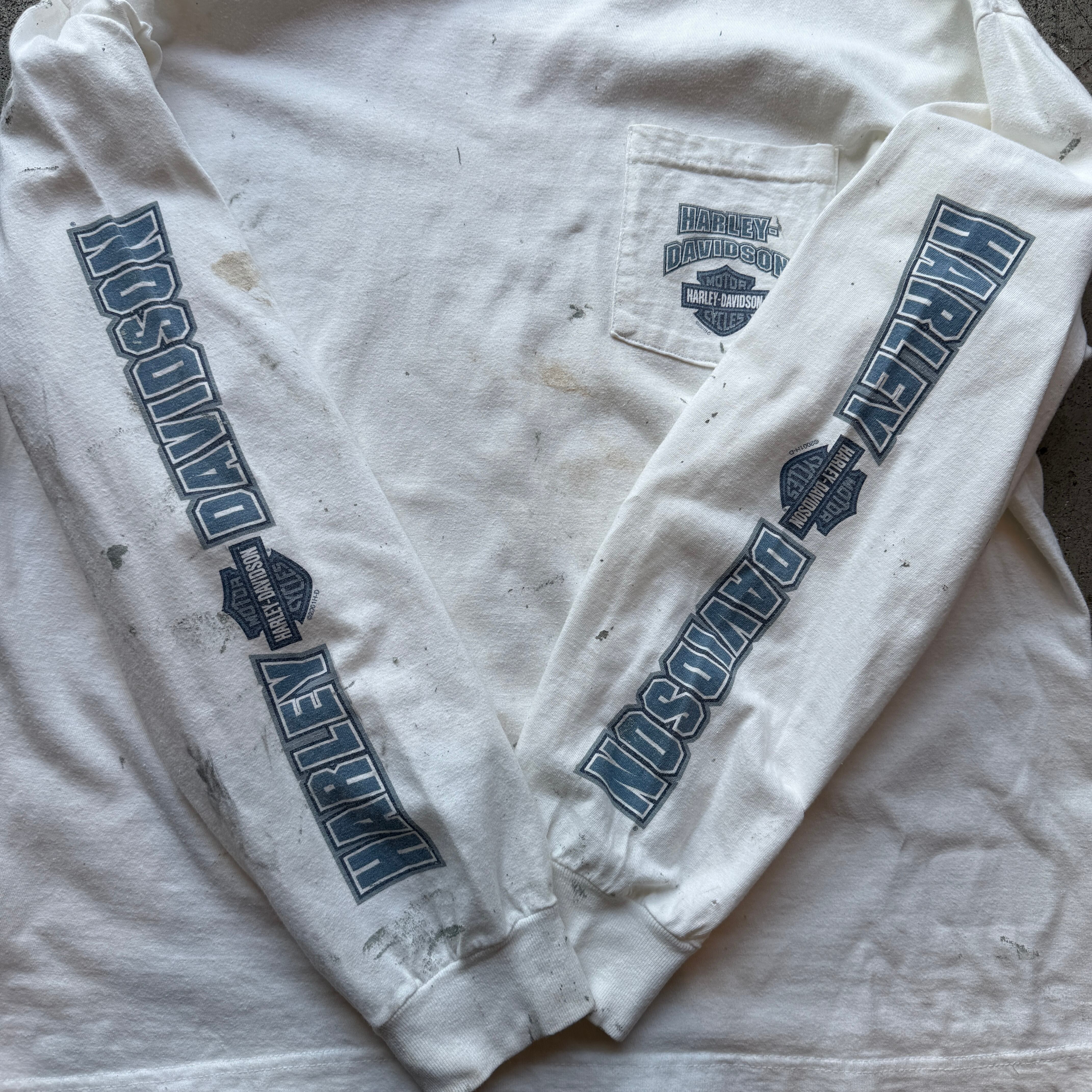 00s HARLEY-DAVIDSON 胸ポケ袖プリント ロングスリーブTシャツ XL USA製