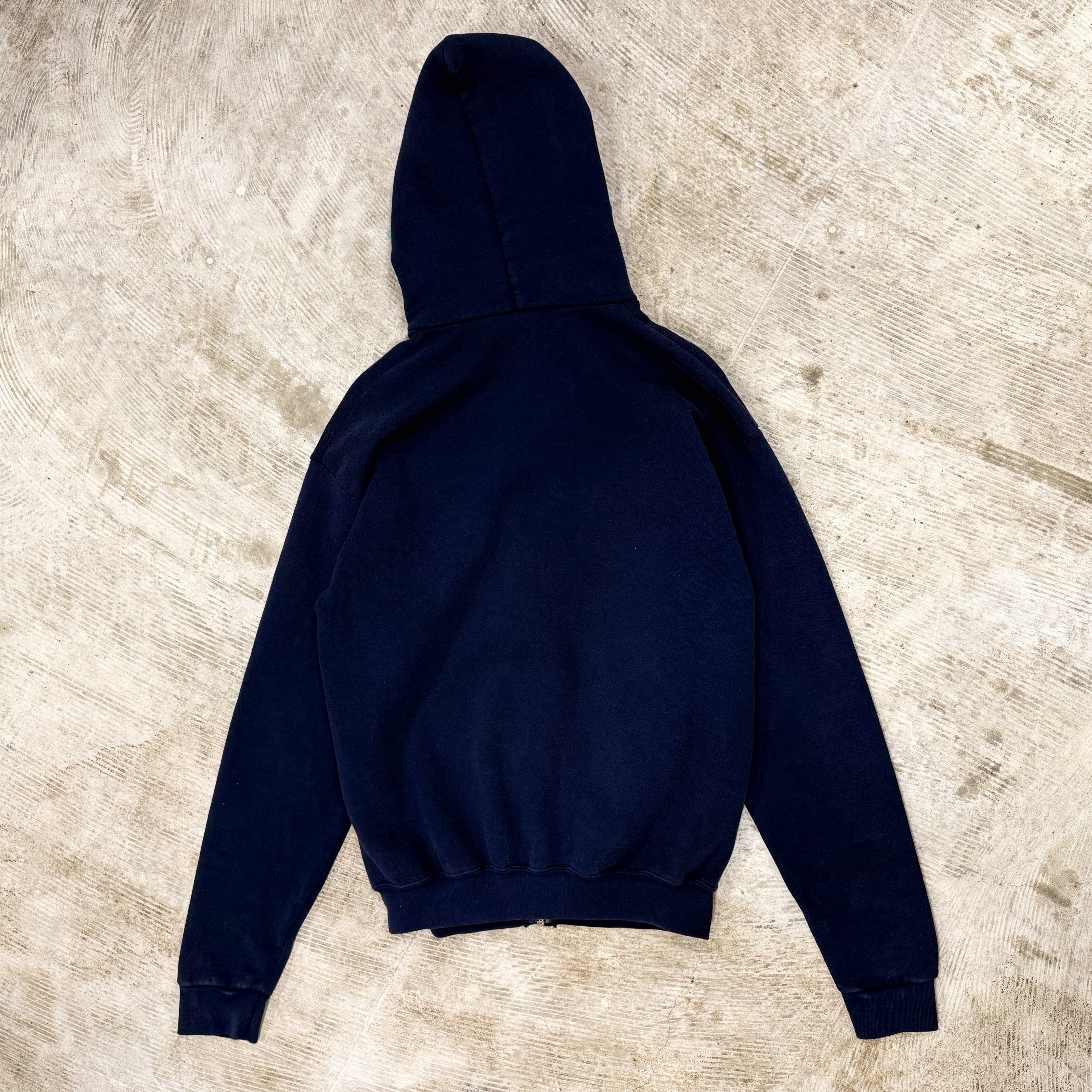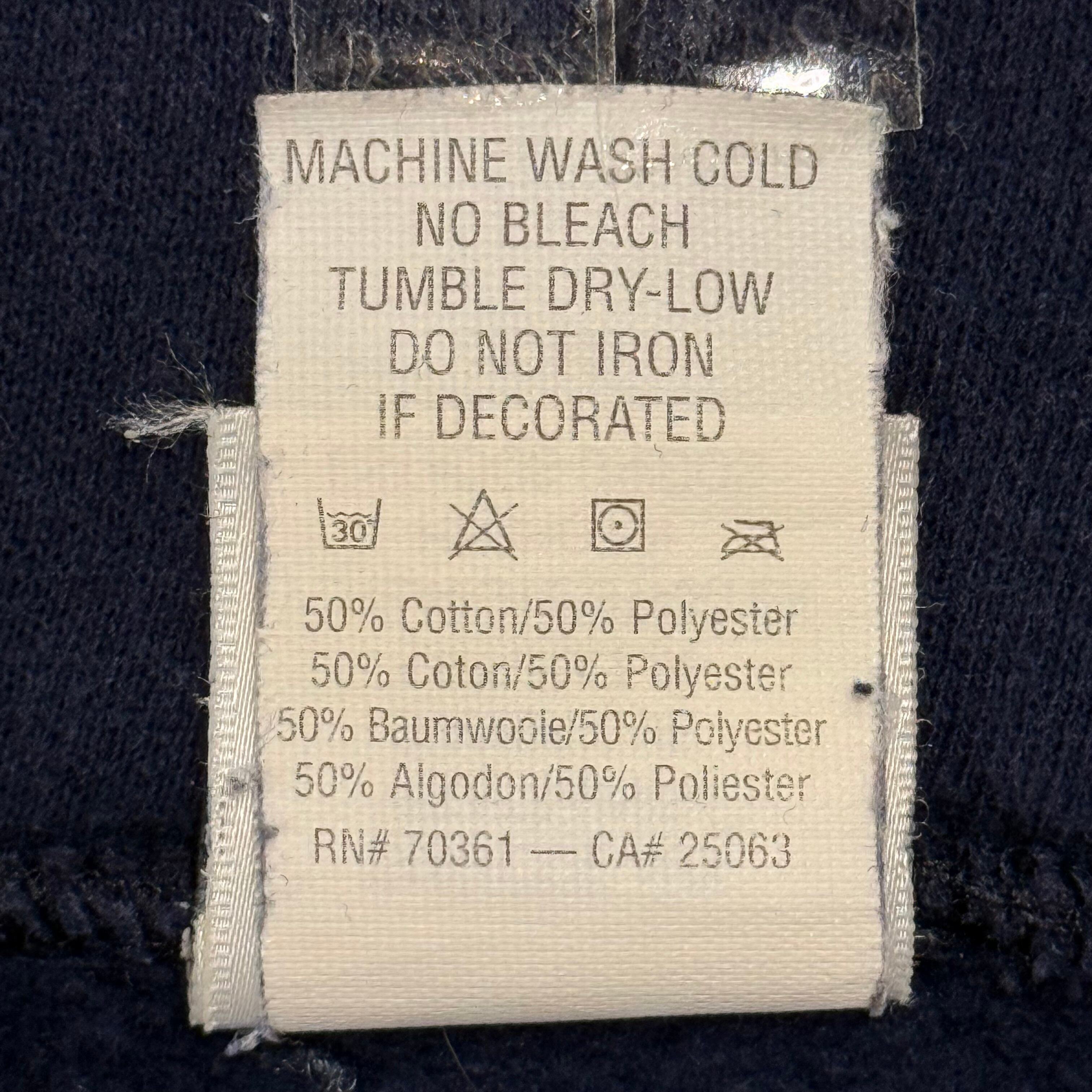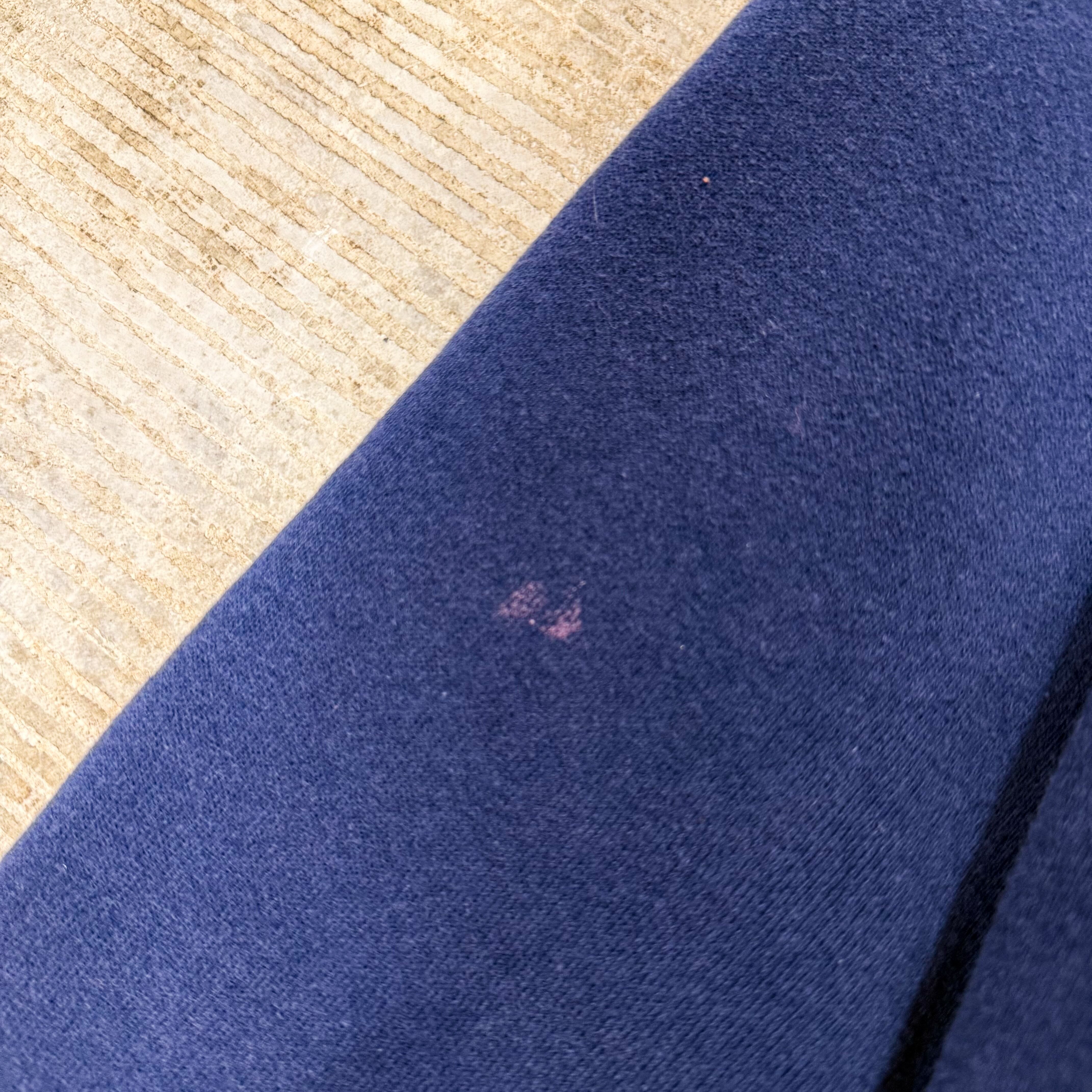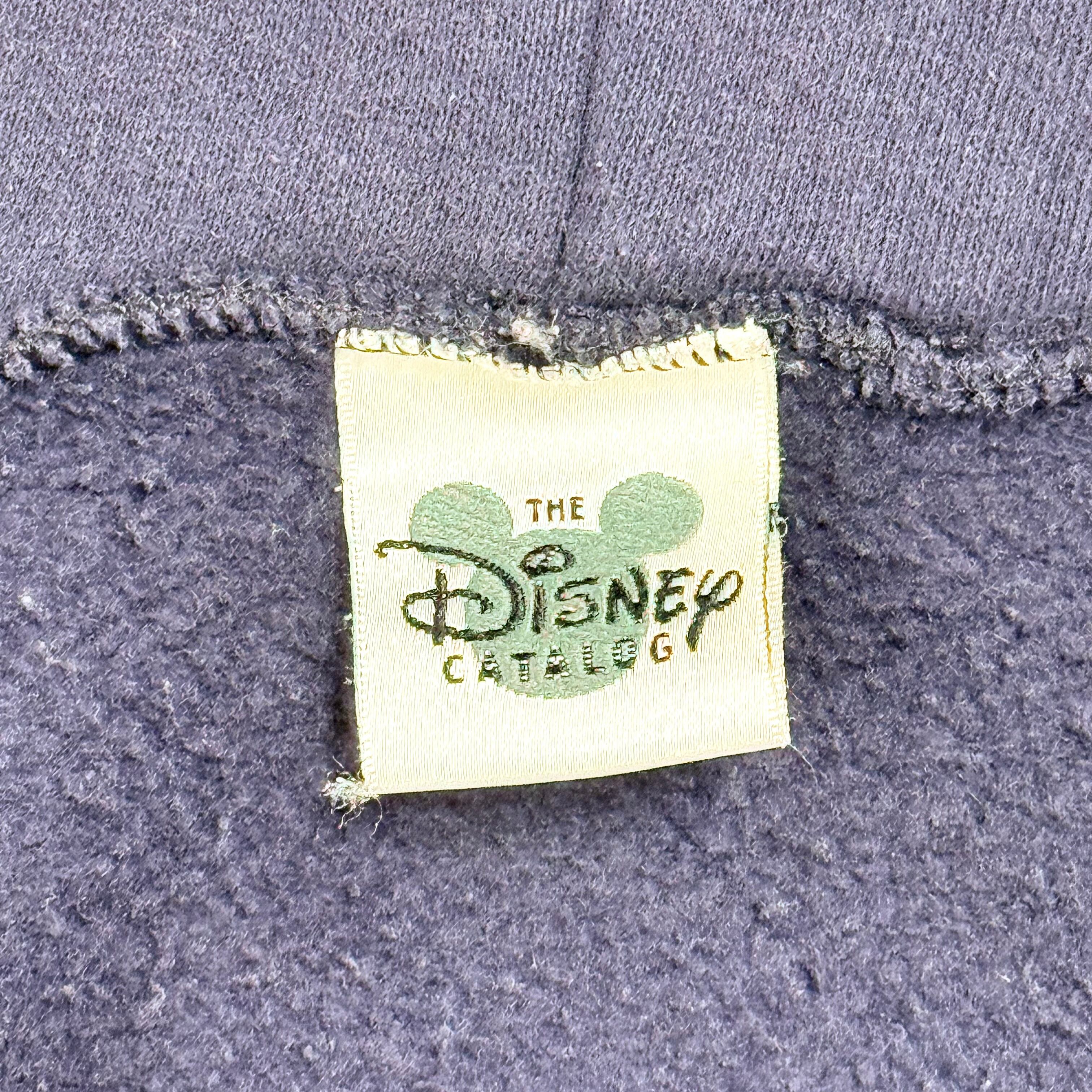 Disney Catalogタグのアメリカ製ボディに、くまのプーさんでおなじみの“Tigger(ティガー)”が大きく入る、キャラクター映え抜群のジップフーディです。ネイビーボディにオレンジ×イエローの配色が効いていて、羽織るだけで主役になる1枚で、インナーは白Tやグレー系でまとめるとプリントがより引き立ちます。コットン×ポリの50/50で扱いやすく、普段使いしやすい一方、袖付近に薄い汚れがあるためコンディションご理解の上ご検討ください。